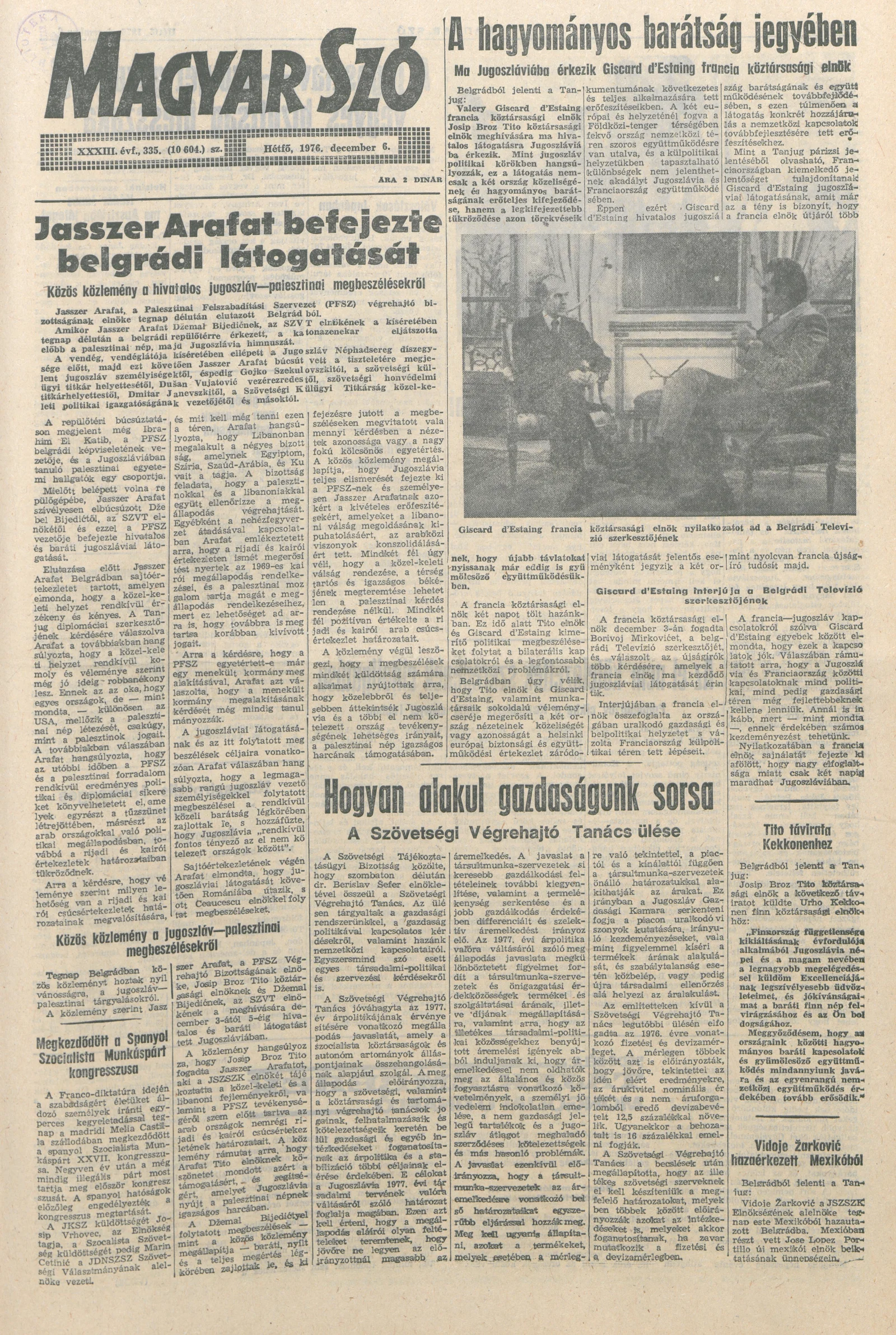 Magyar Szó, 33. évf. 1976. december 6. 335. sz. 1–8. oldal
