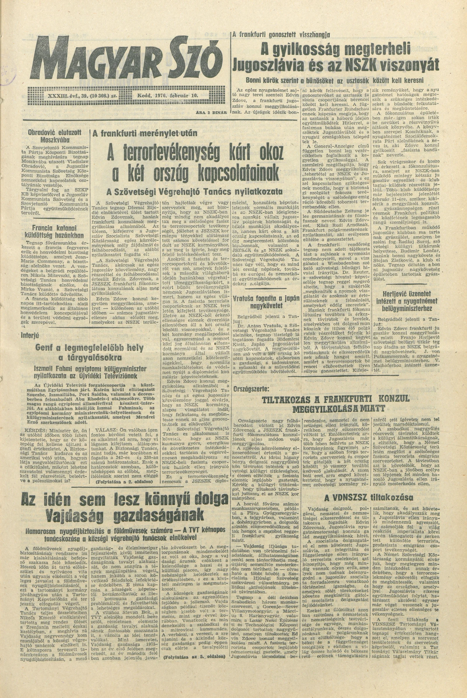 Magyar Szó, 33. évf. 1976. február 10. 39. sz. 1–20. oldal