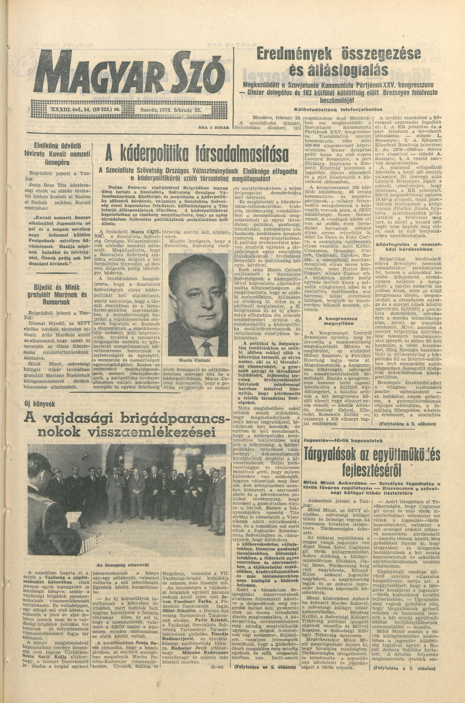 Magyar Szó, 33. évf. 1976. február 25. 54. sz. 1–20. oldal
