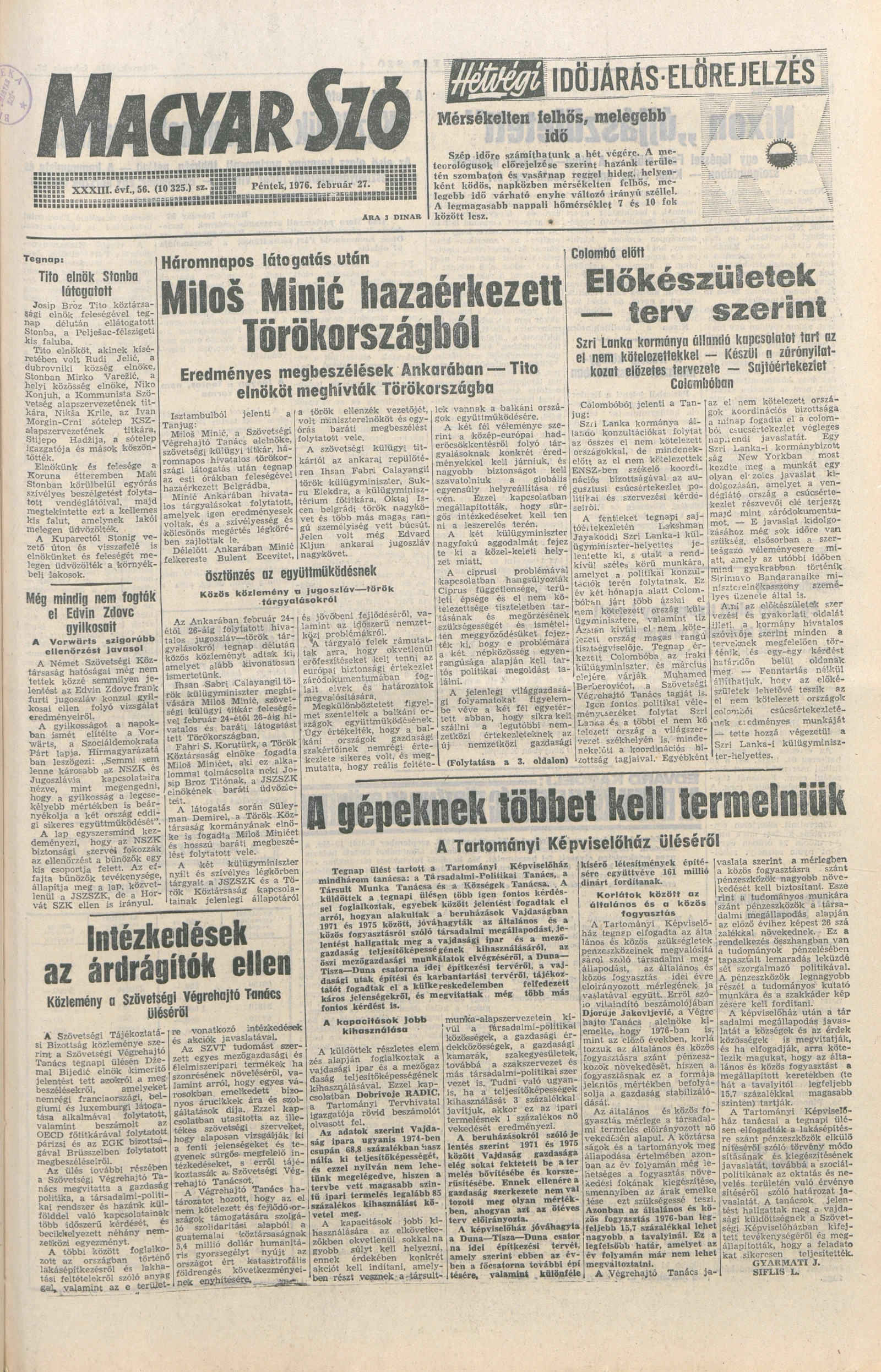 Magyar Szó, 33. évf. 1976. február 27. 56. sz. 1–16. oldal