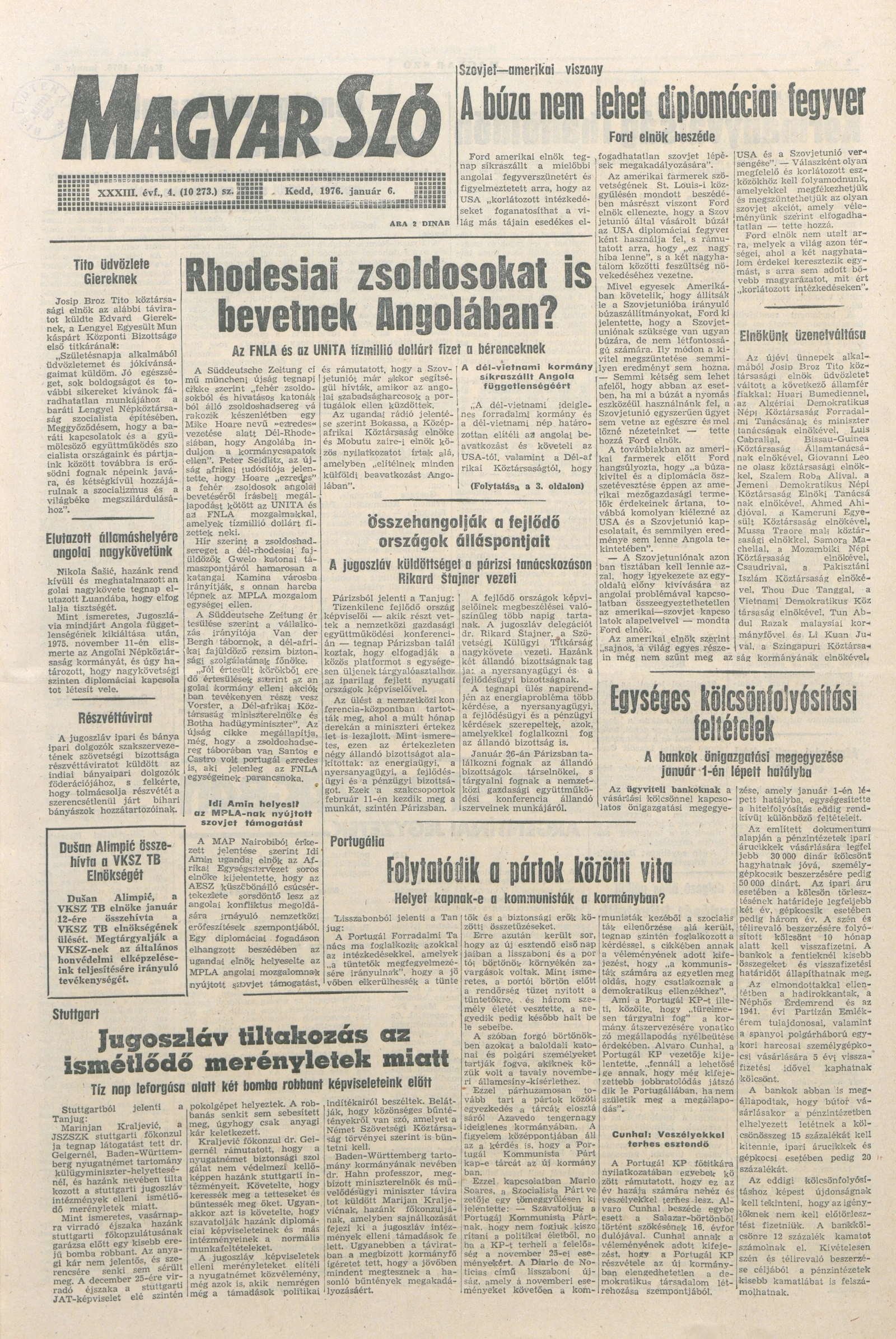 Magyar Szó, 33. évf. 1976. január 6. 4. sz. 1–20. oldal