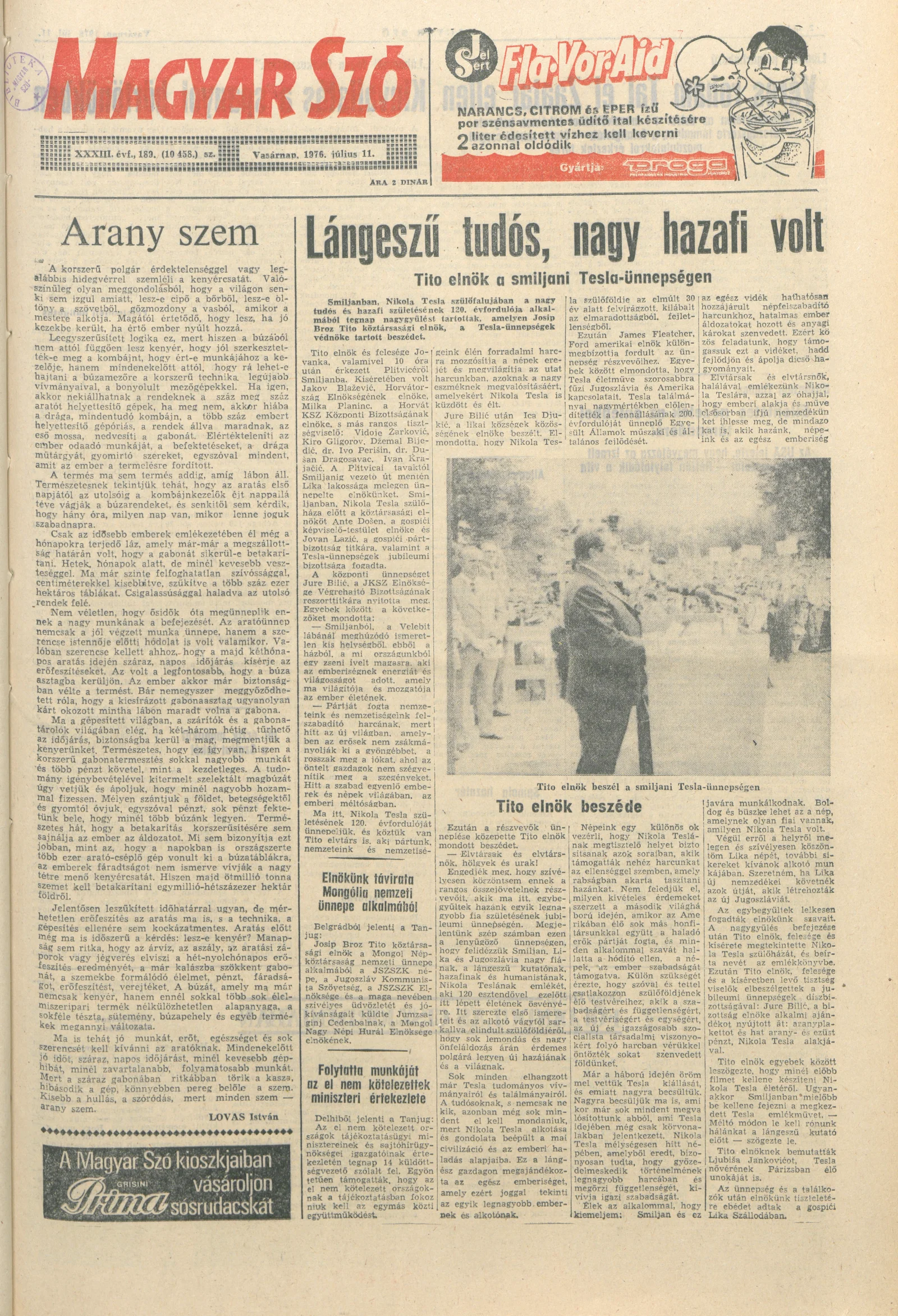 Magyar Szó, 33. évf. 1976. július 11. 189. sz. 1–38. oldal