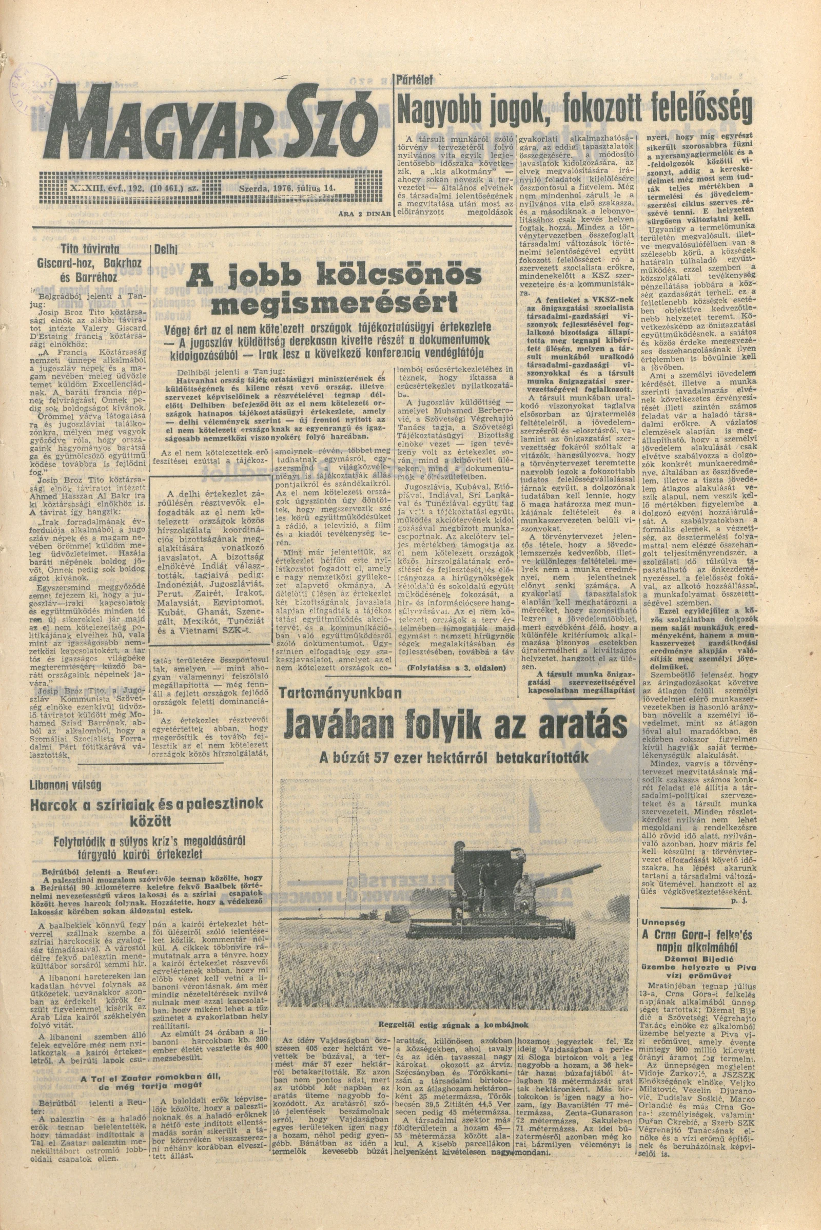 Magyar Szó, 33. évf. 1976. július 14. 192. sz. 1–16. oldal