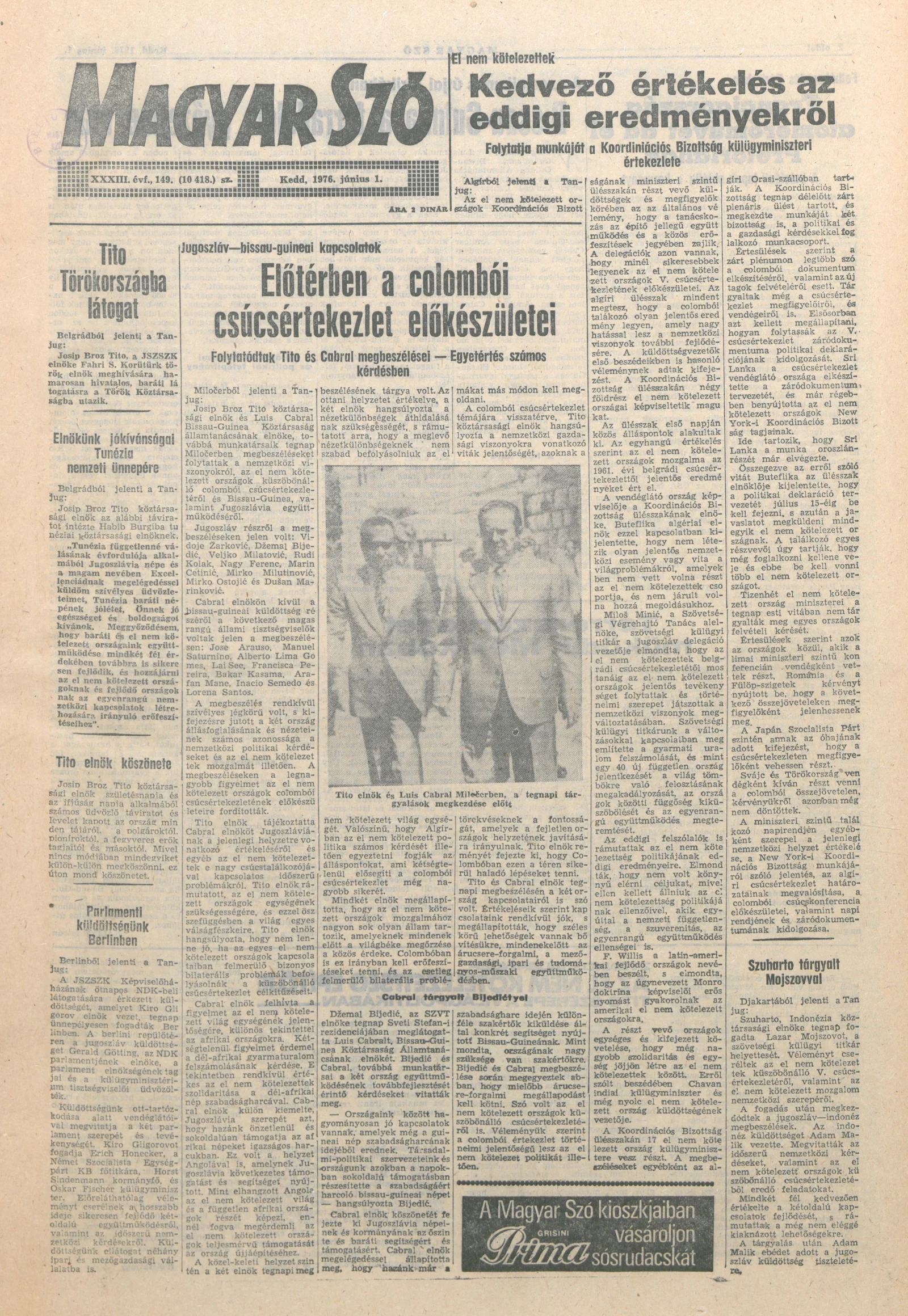 Magyar Szó, 33. évf. 1976. június 1. 149. sz. 1–20. oldal