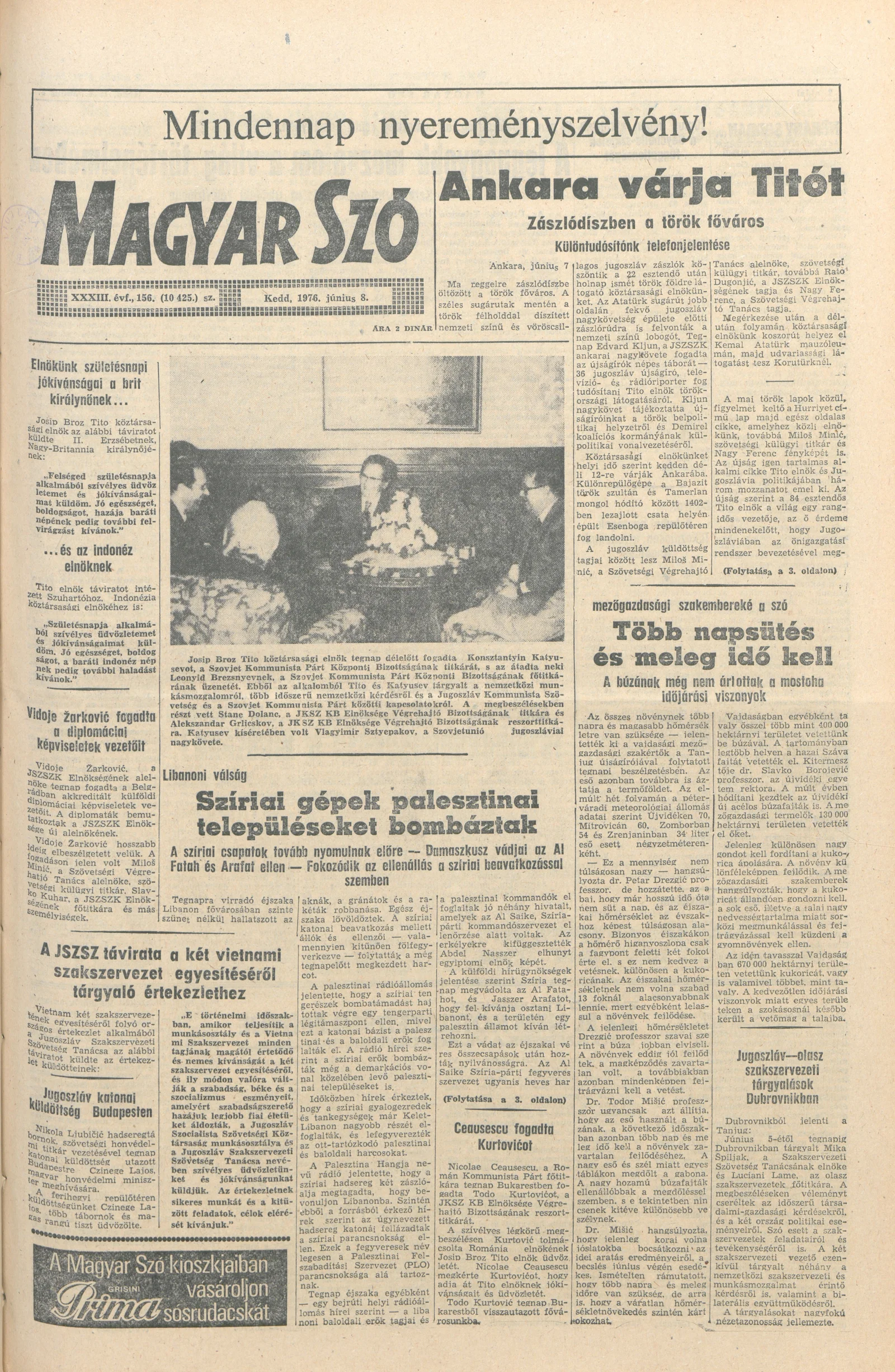 Magyar Szó, 33. évf. 1976. június 8. 156. sz. 1–20. oldal