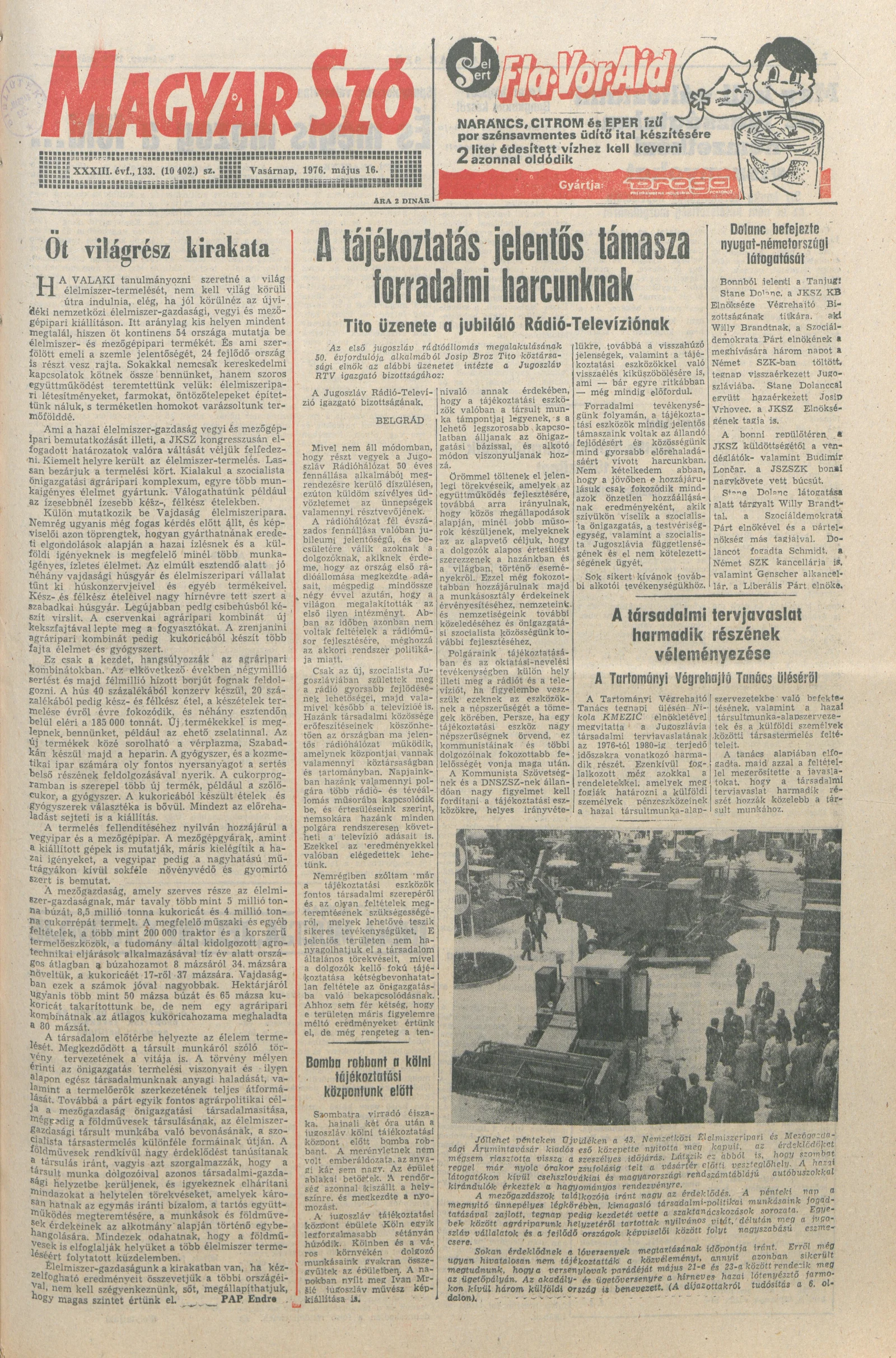 Magyar Szó, 33. évf. 1976. május 16. 133. sz. 1–36. oldal