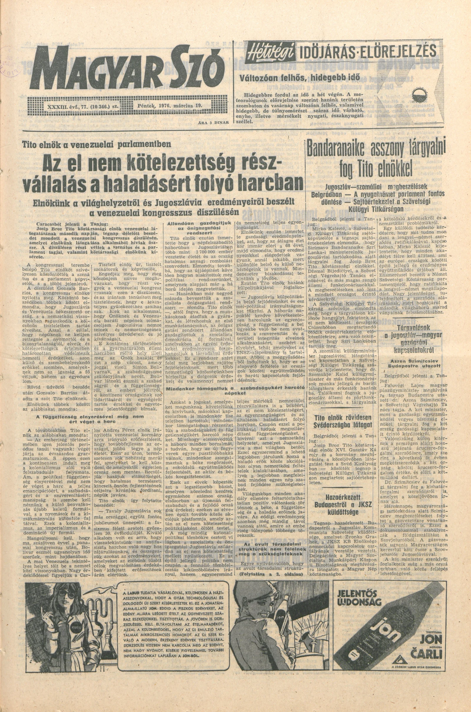 Magyar Szó, 33. évf. 1976. március 19. 77. sz. 1–16. oldal