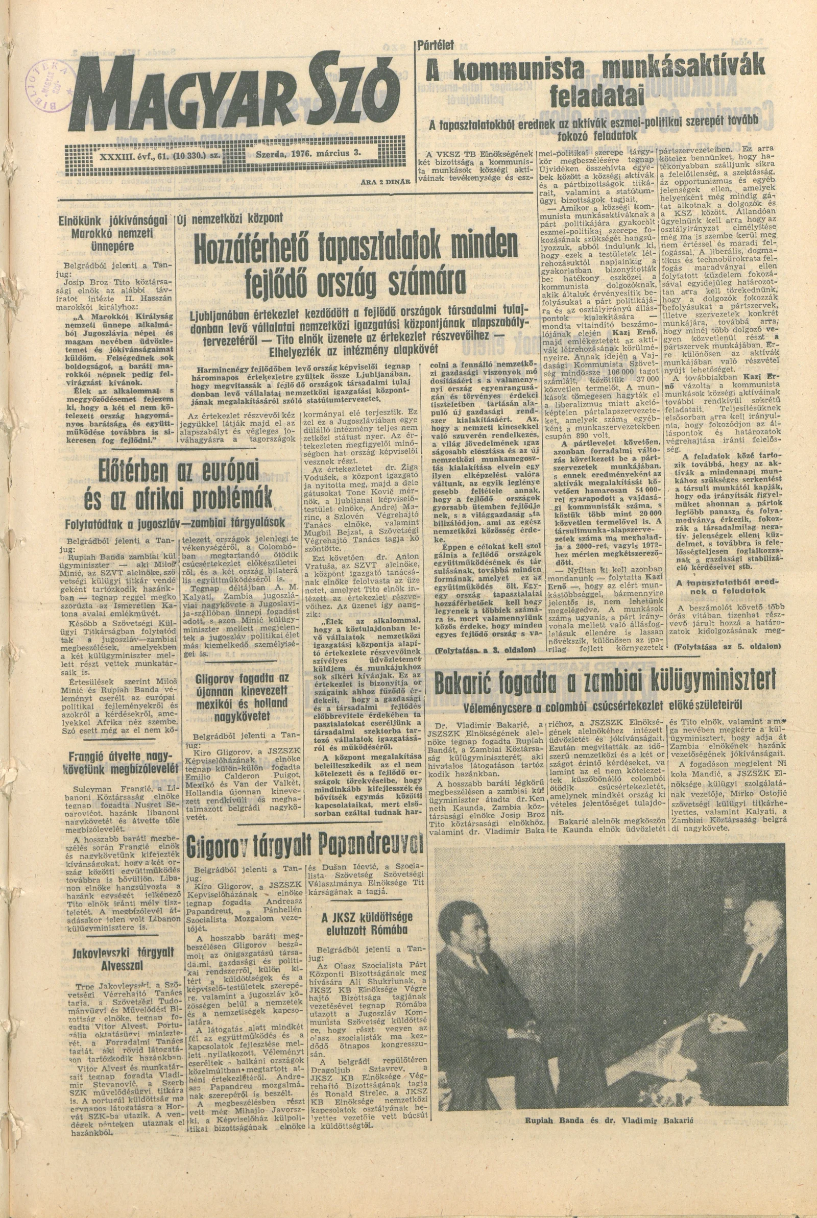 Magyar Szó, 33. évf. 1976. március 3. 61. sz. 1–20. oldal