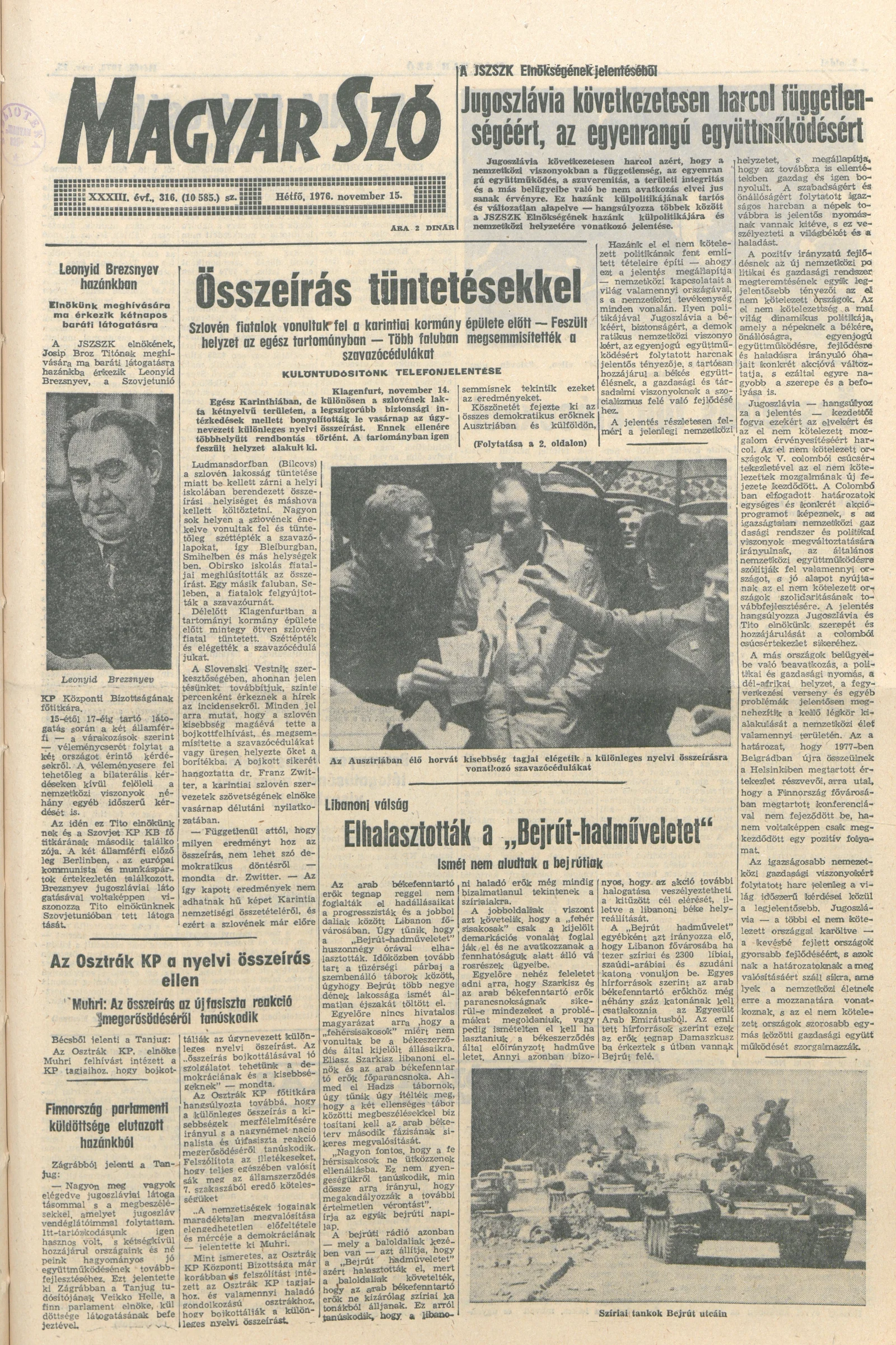Magyar Szó, 33. évf. 1976. november 15. 316. sz. 1–8. oldal