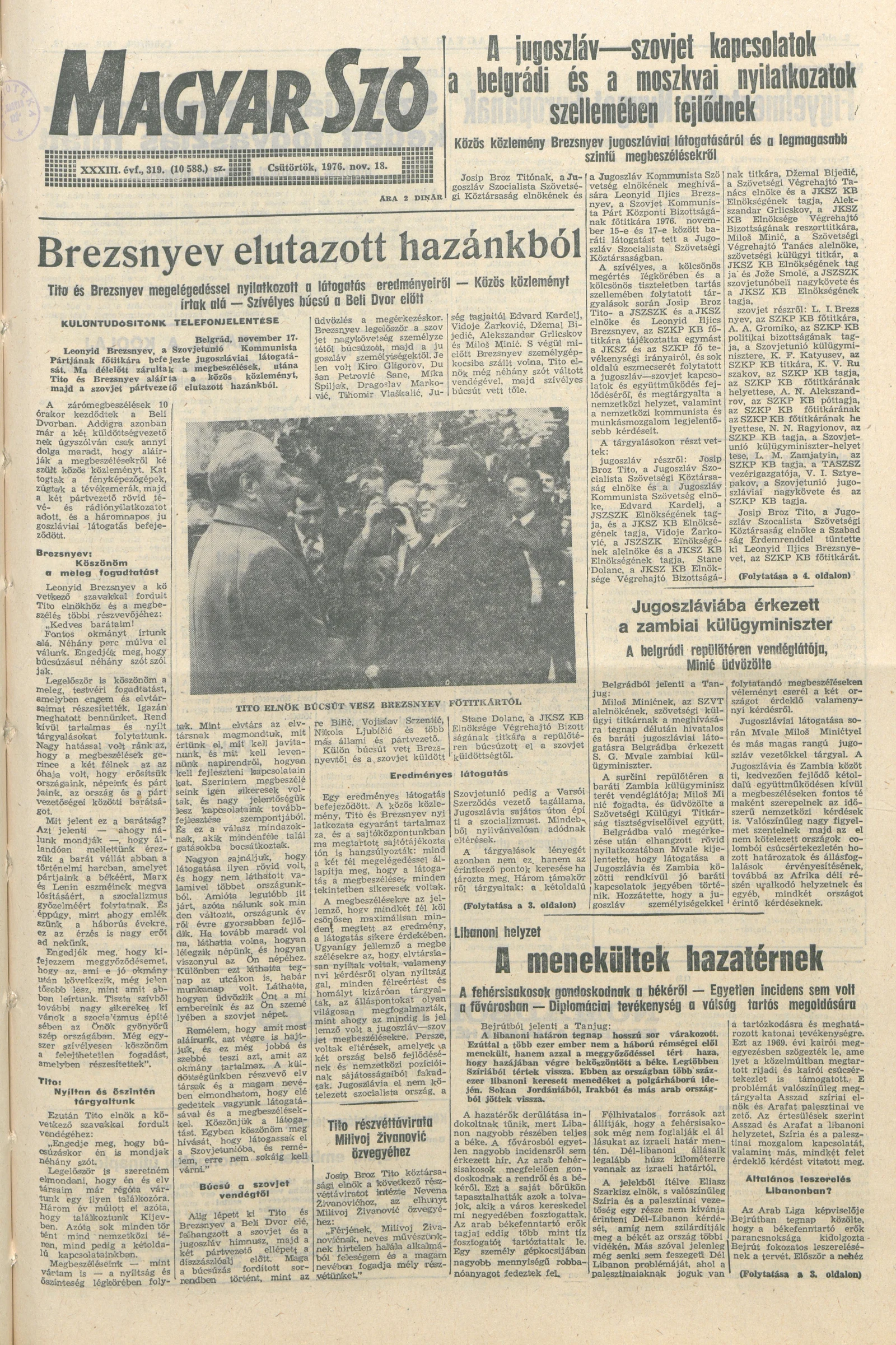 Magyar Szó, 33. évf. 1976. november 18. 319. sz. 1–20. oldal