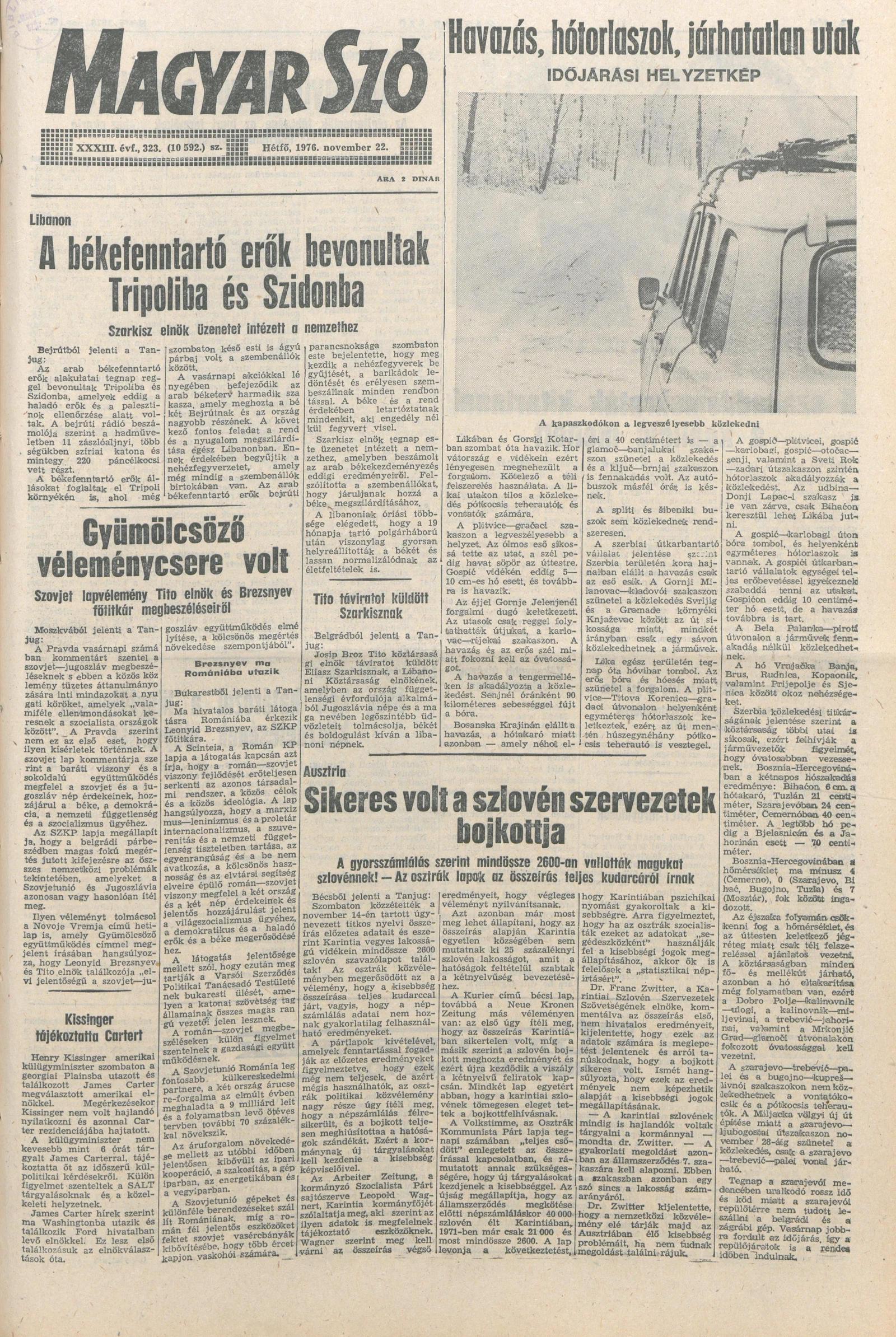 Magyar Szó, 33. évf. 1976. november 22. 323. sz. 1–8. oldal