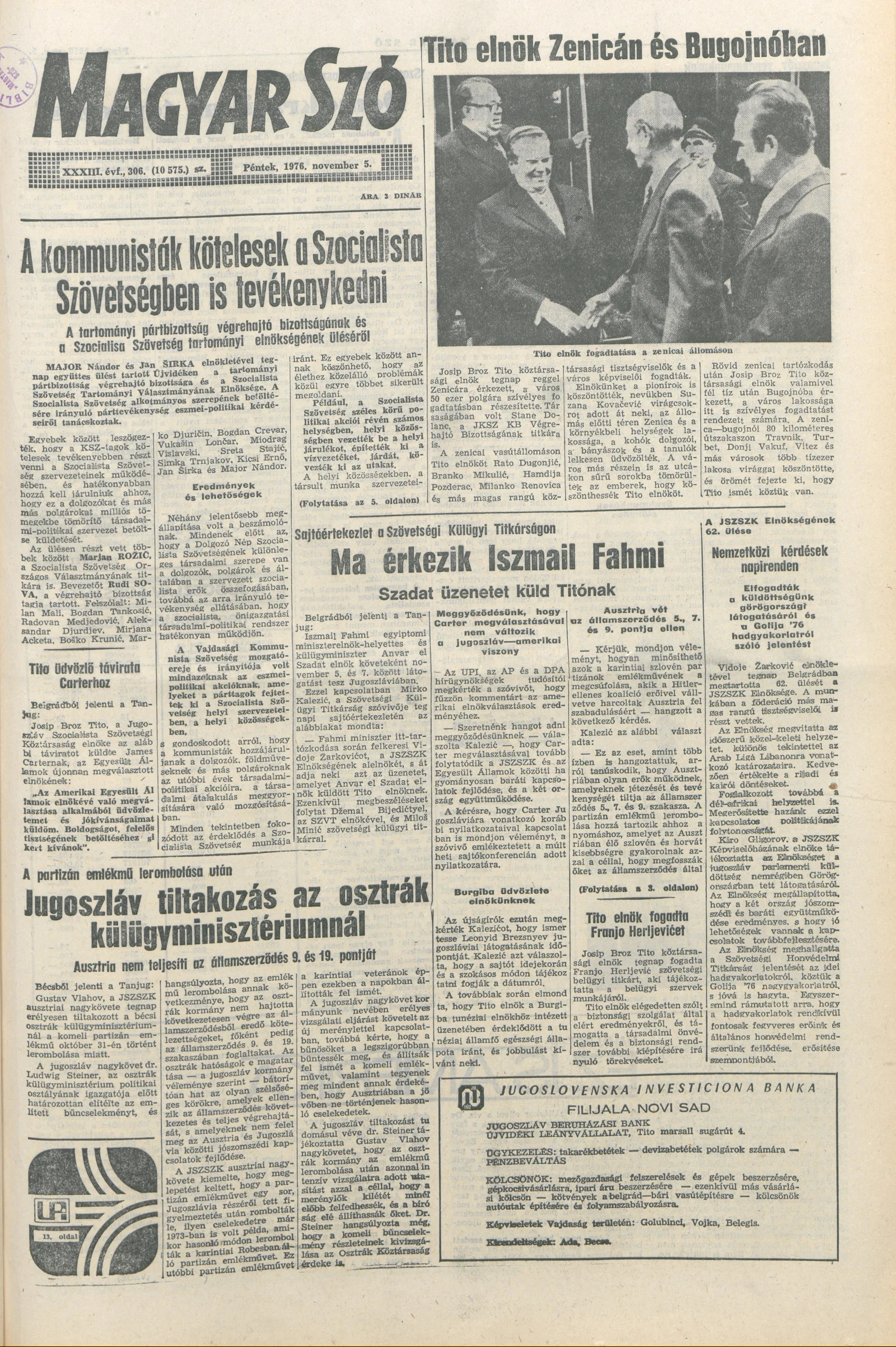 Magyar Szó, 33. évf. 1976. november 5. 306. sz. 1–16. oldal