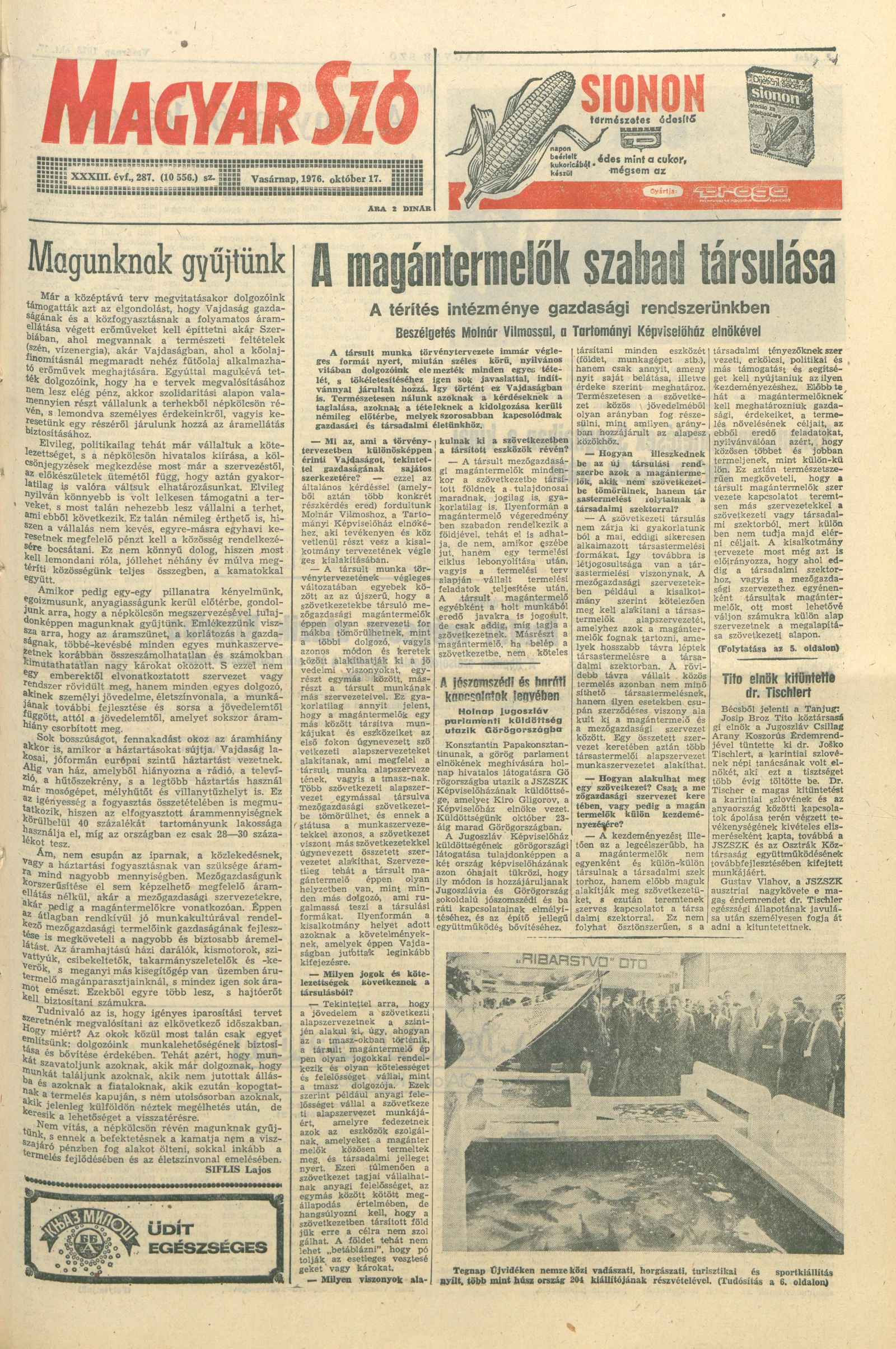 Magyar Szó, 33. évf. 1976. október 17. 287. sz. 1–32. oldal