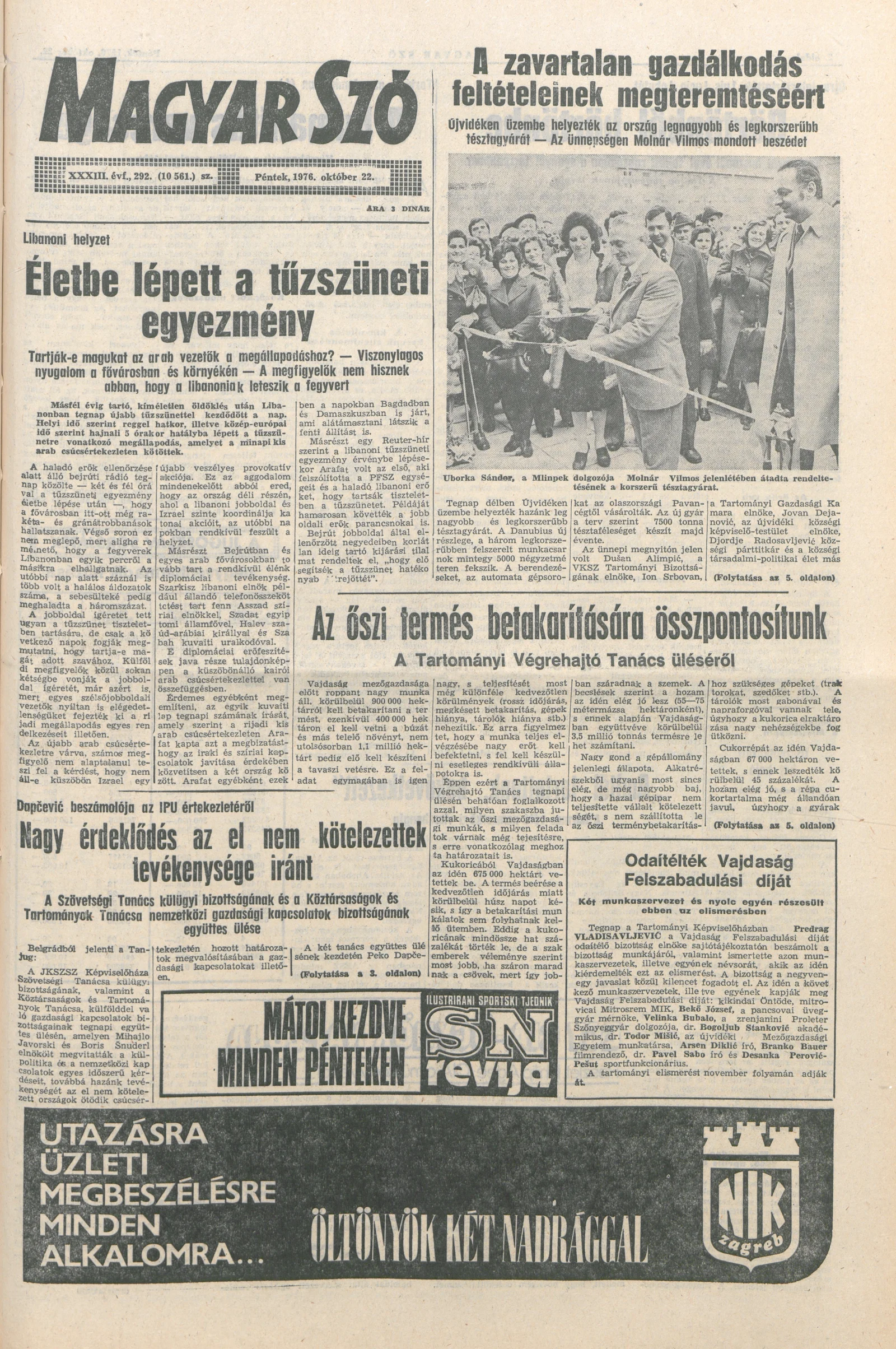 Magyar Szó, 33. évf. 1976. október 22. 292. sz. 1–16. oldal