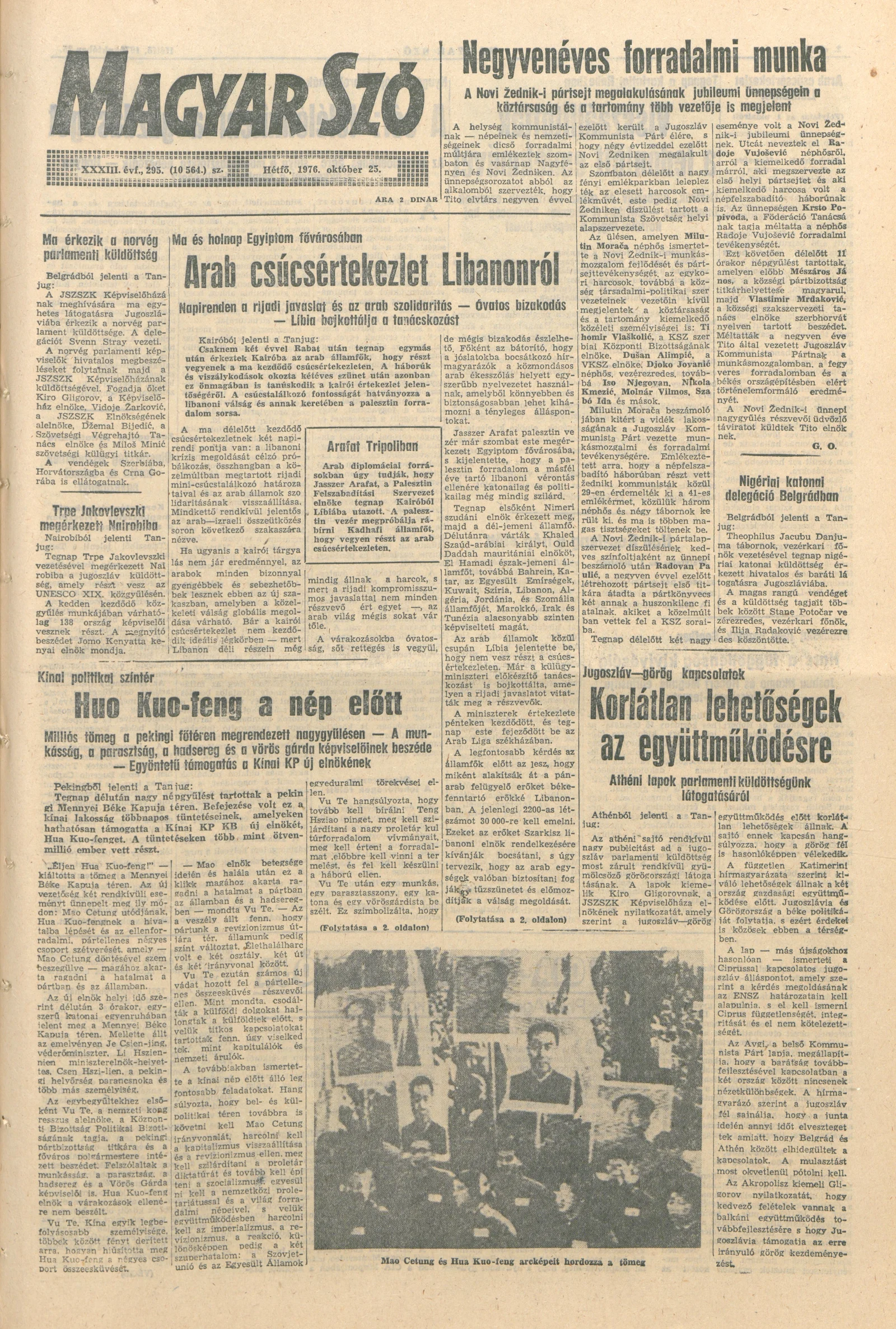 Magyar Szó, 33. évf. 1976. október 25. 295. sz. 1–8. oldal