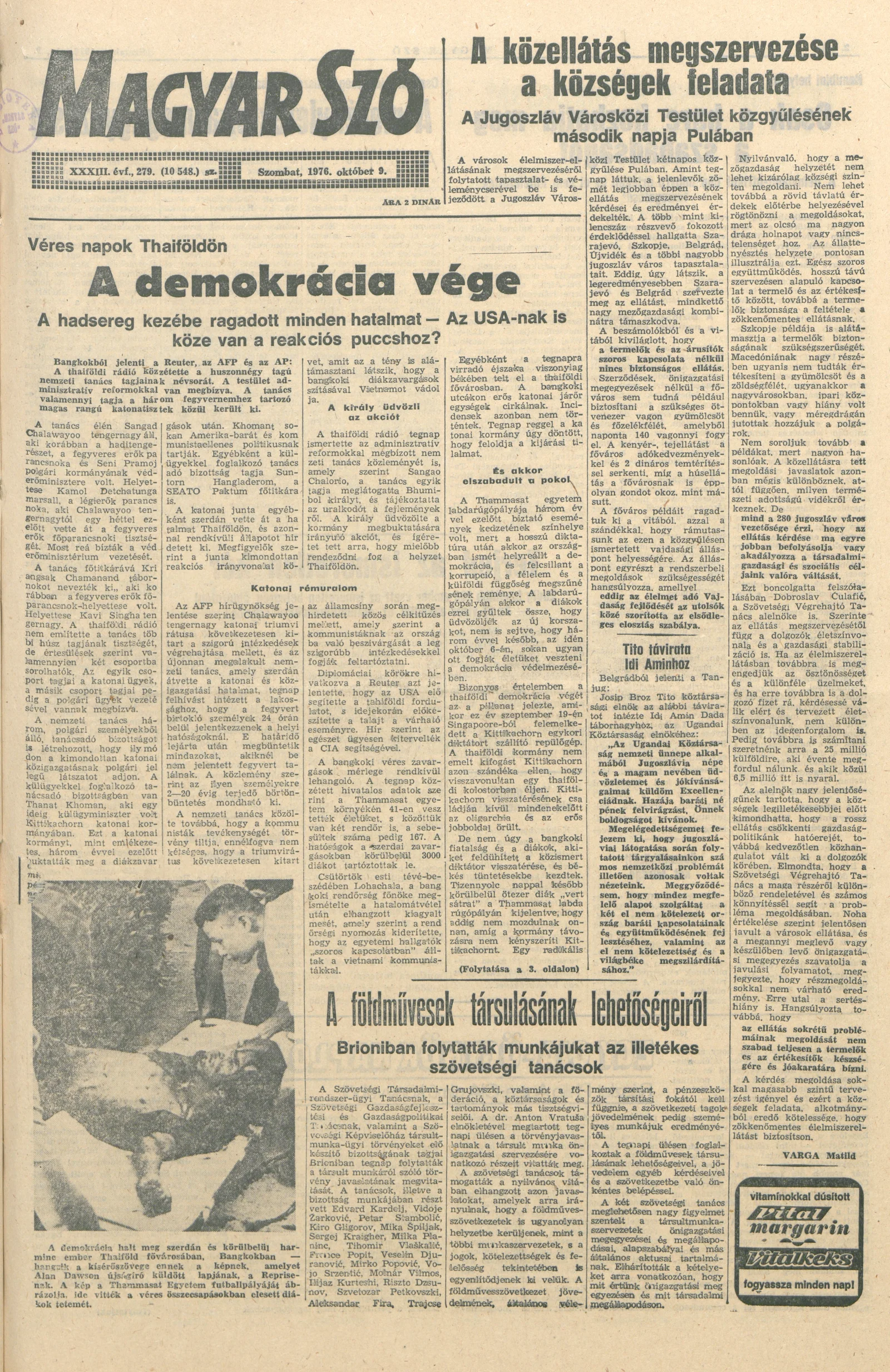 Magyar Szó, 33. évf. 1976. október 9. 279. sz. 1–20. oldal