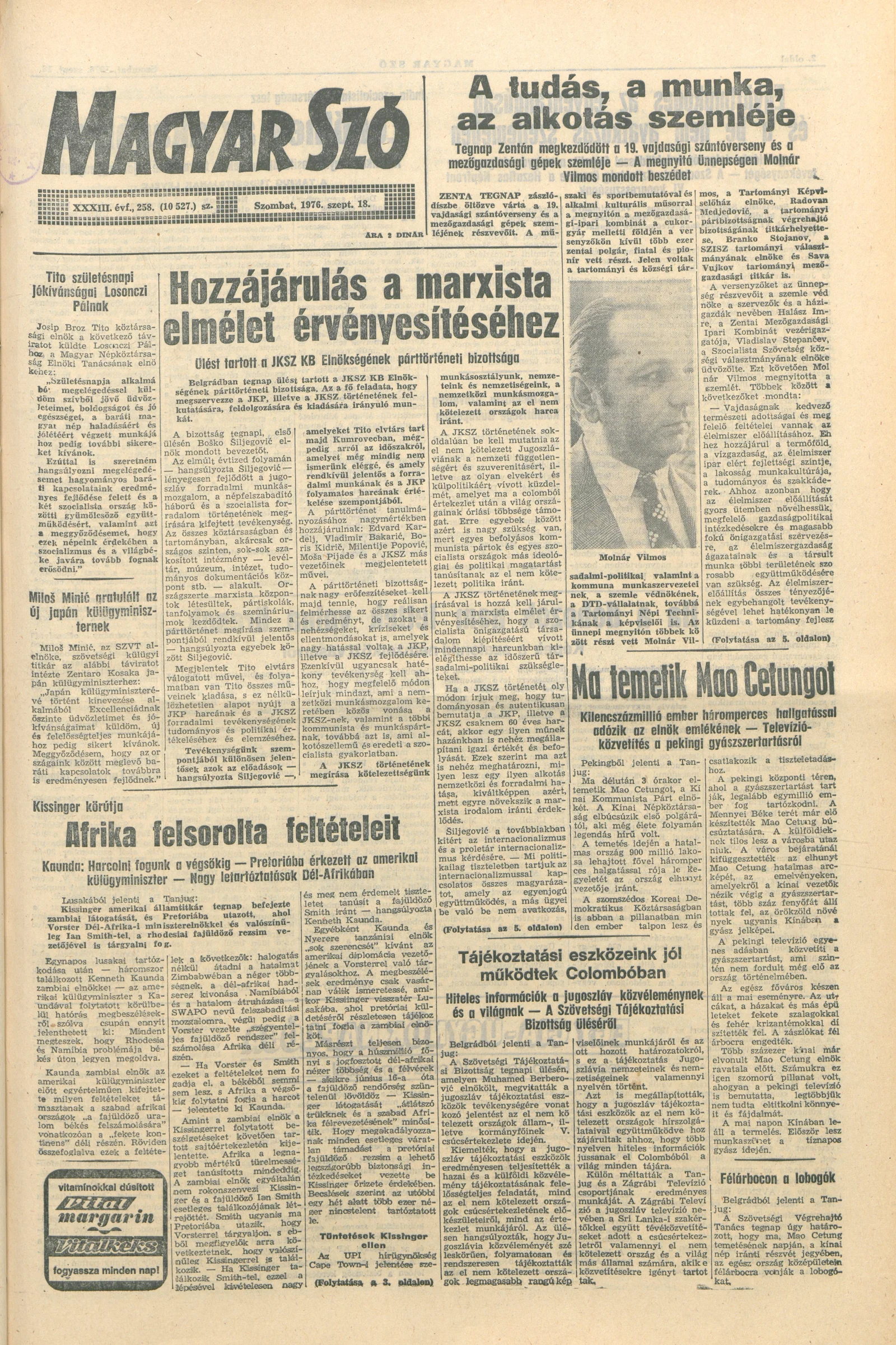 Magyar Szó, 33. évf. 1976. szeptember 18. 258. sz. 1–20. oldal