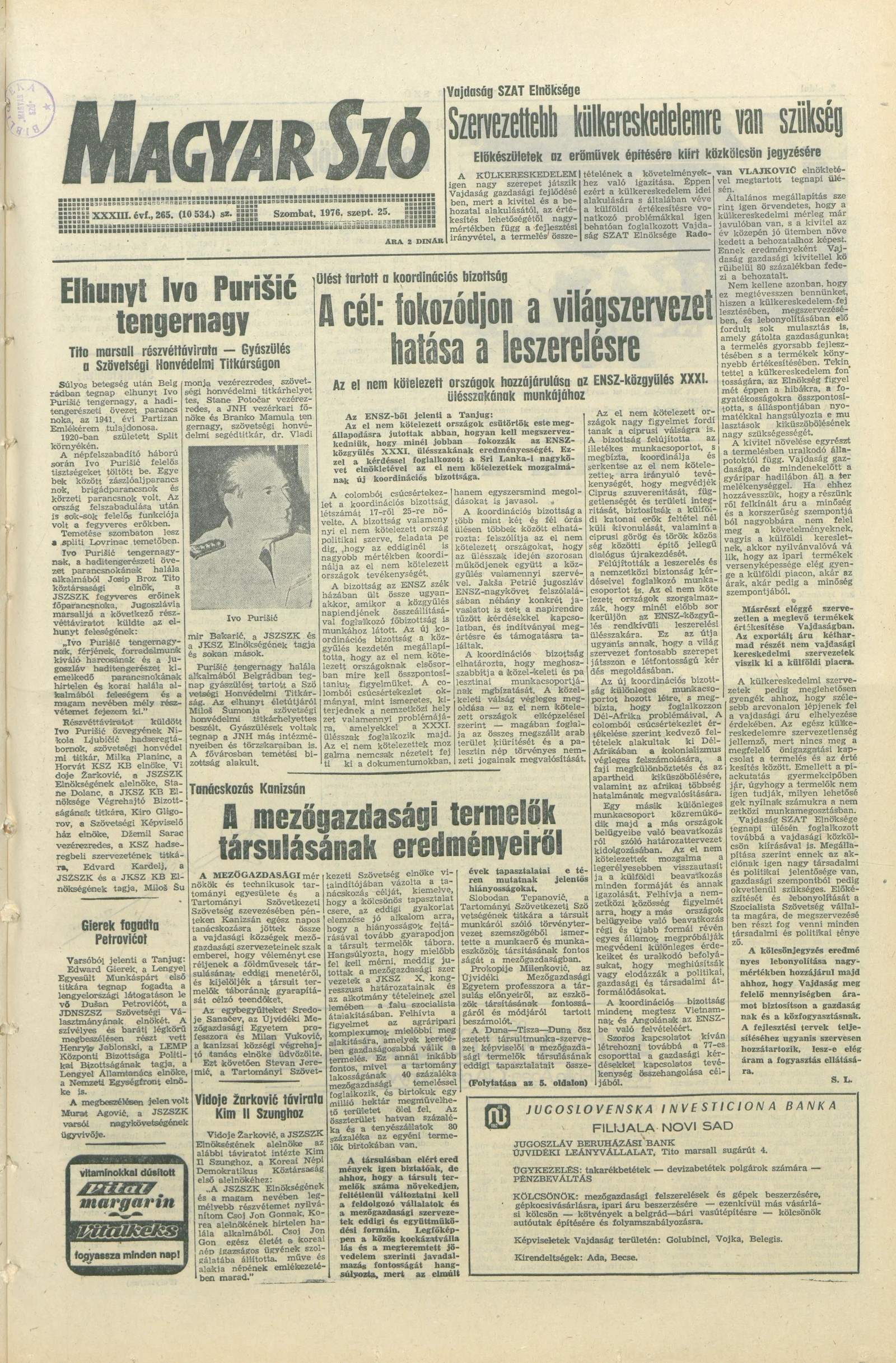Magyar Szó, 33. évf. 1976. szeptember 25. 265. sz. 1–20. oldal