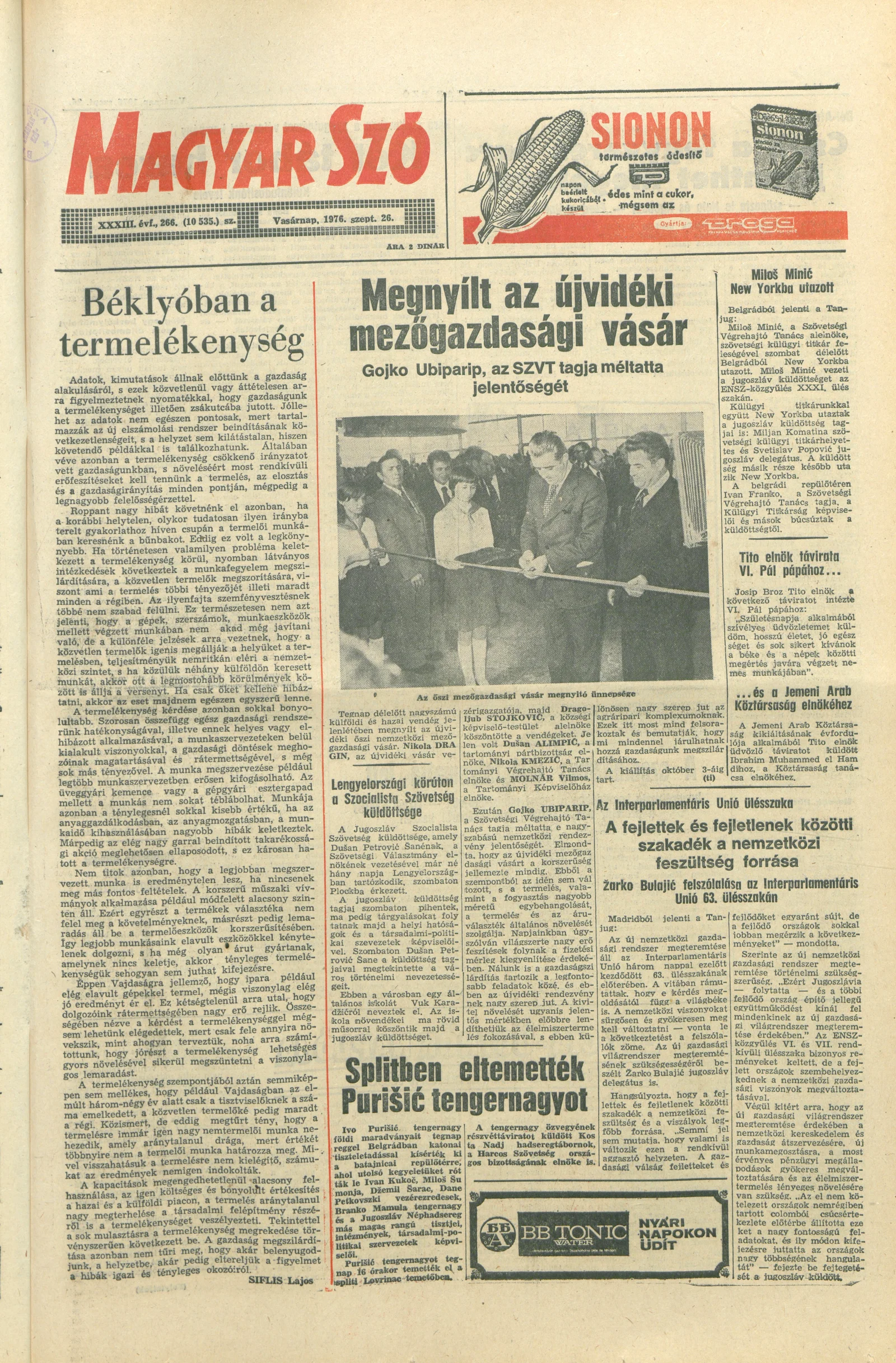Magyar Szó, 33. évf. 1976. szeptember 26. 266. sz. 1–28. oldal