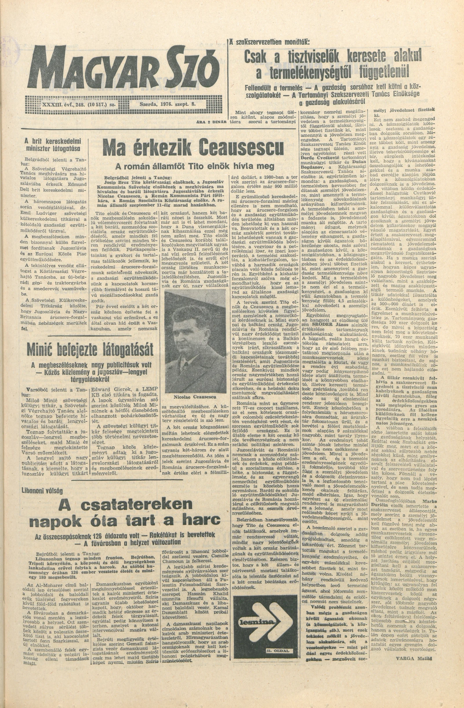 Magyar Szó, 33. évf. 1976. szeptember 8. 248. sz. 1–20. oldal
