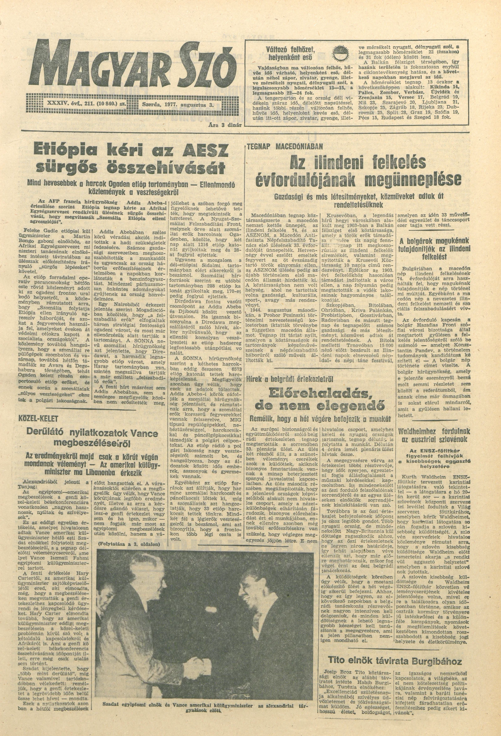 Magyar Szó, 34. évf. 1977. augusztus 3. 211. sz.