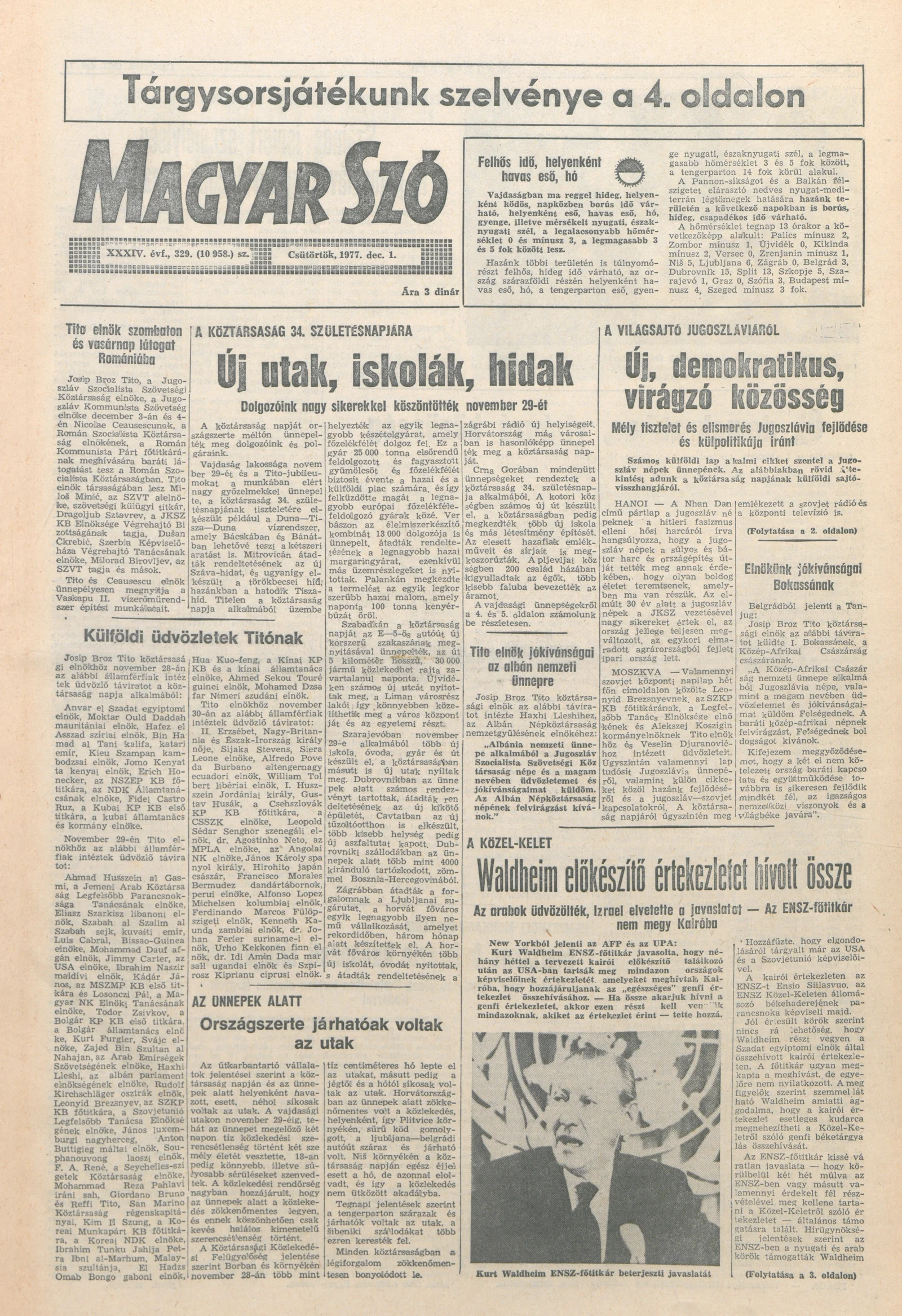 Magyar Szó, 34. évf. 1977. december 1. 329. sz.