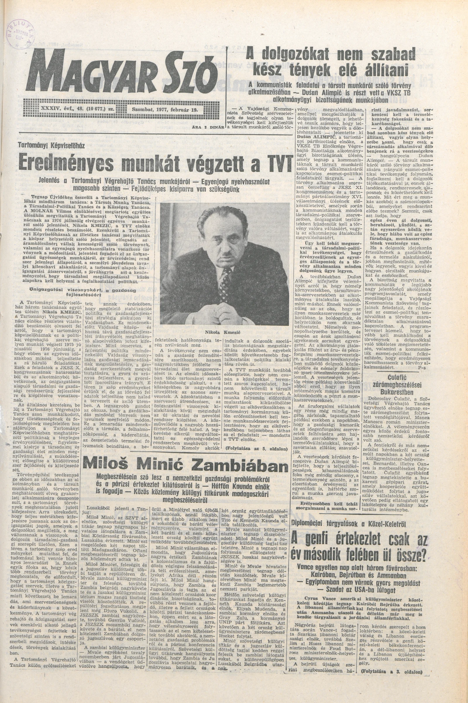 Magyar Szó, 34. évf. 1977. február 19. 48. sz.
