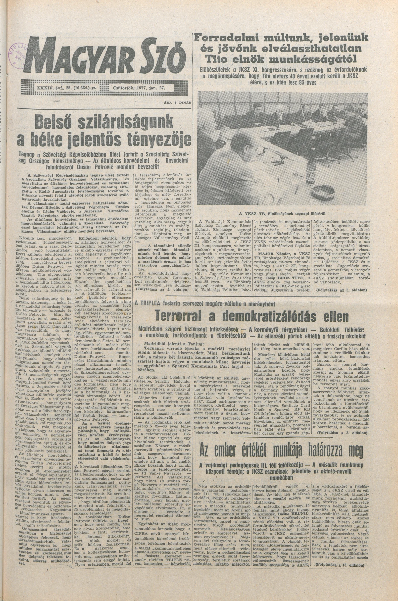 Magyar Szó, 34. évf. 1977. január 27. 25. sz.