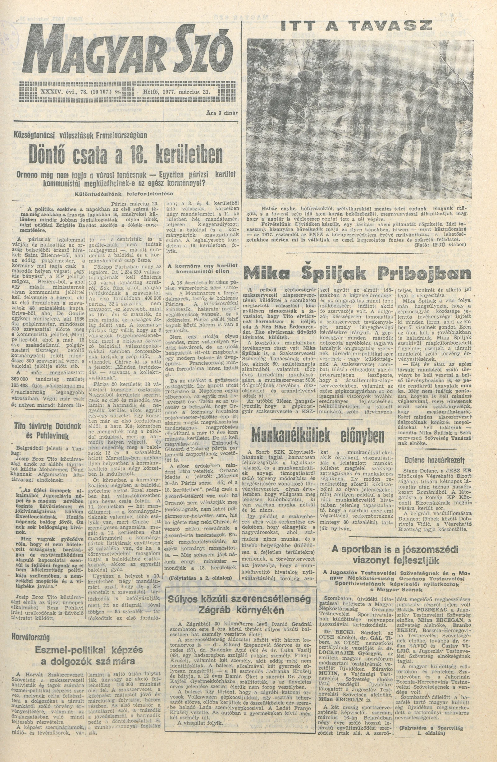 Magyar Szó, 34. évf. 1977. március 21. 78. sz.