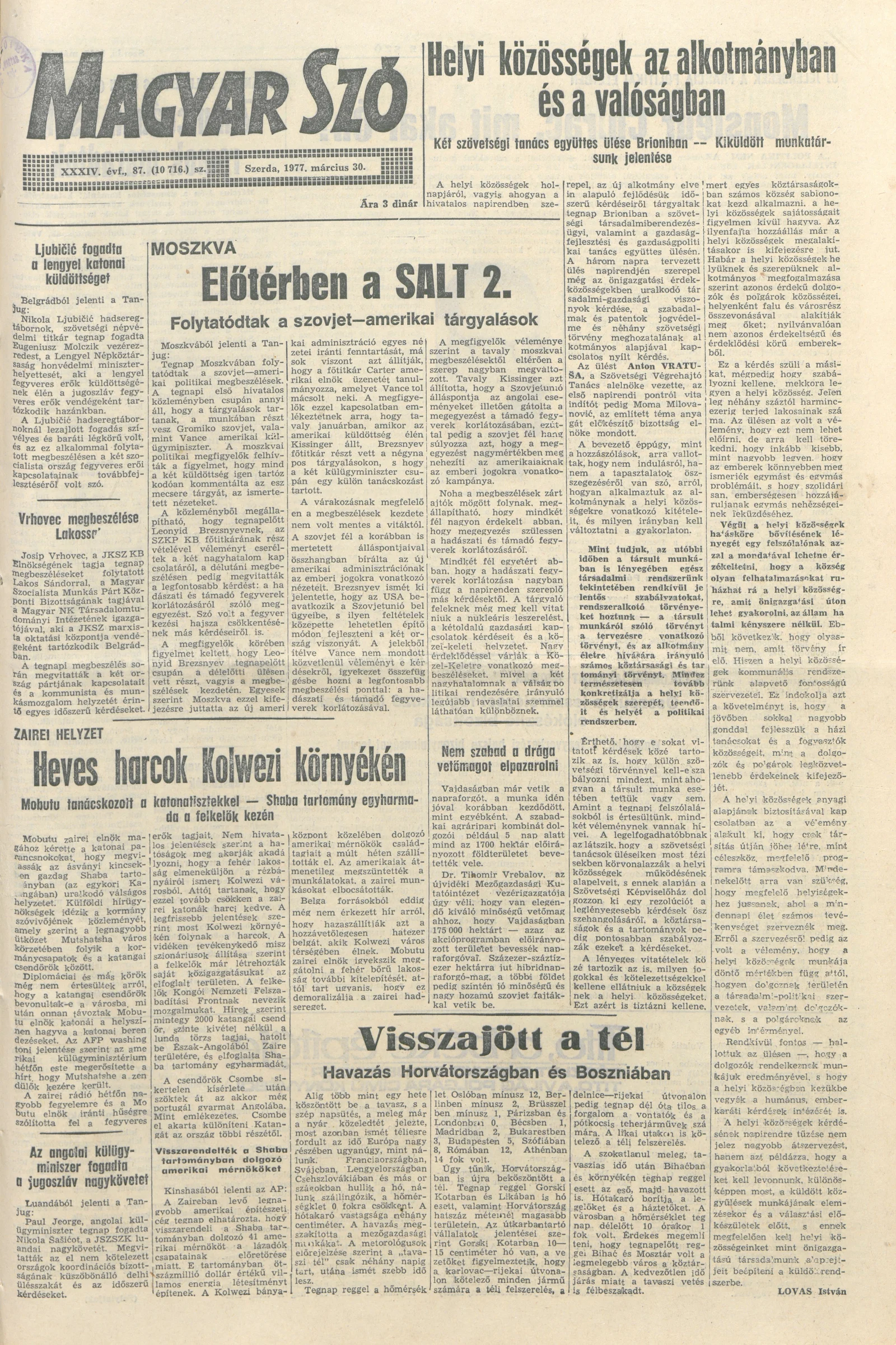 Magyar Szó, 34. évf. 1977. március 30. 87. sz.