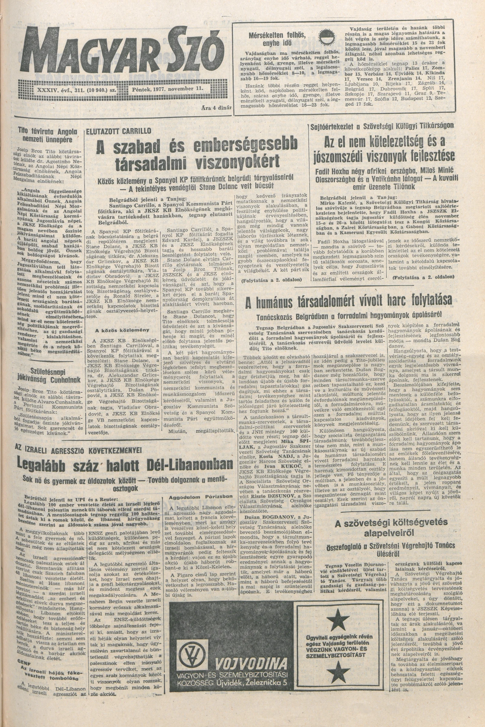 Magyar Szó, 34. évf. 1977. november 11. 311. sz.