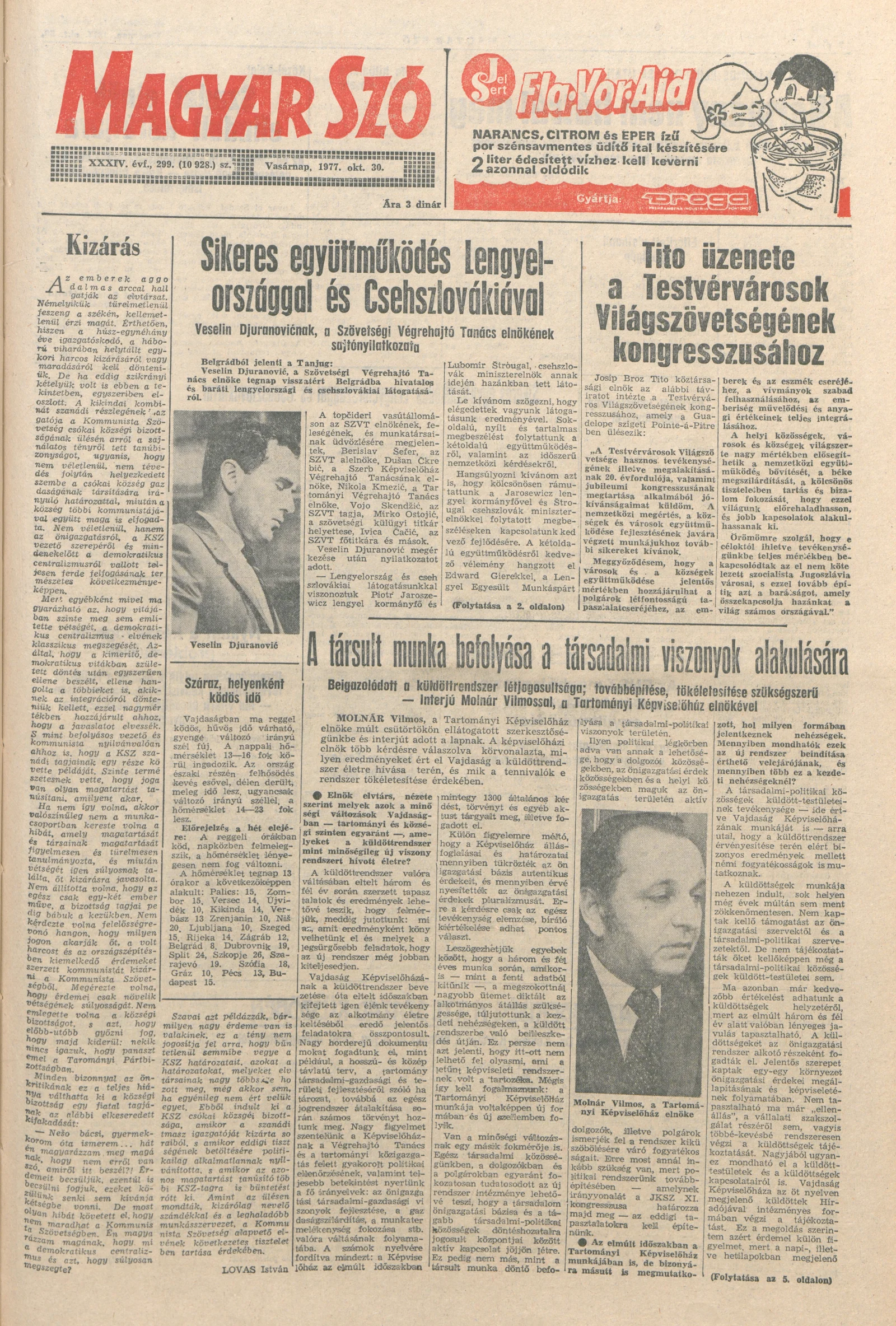 Magyar Szó, 34. évf. 1977. október 30. 299. sz.
