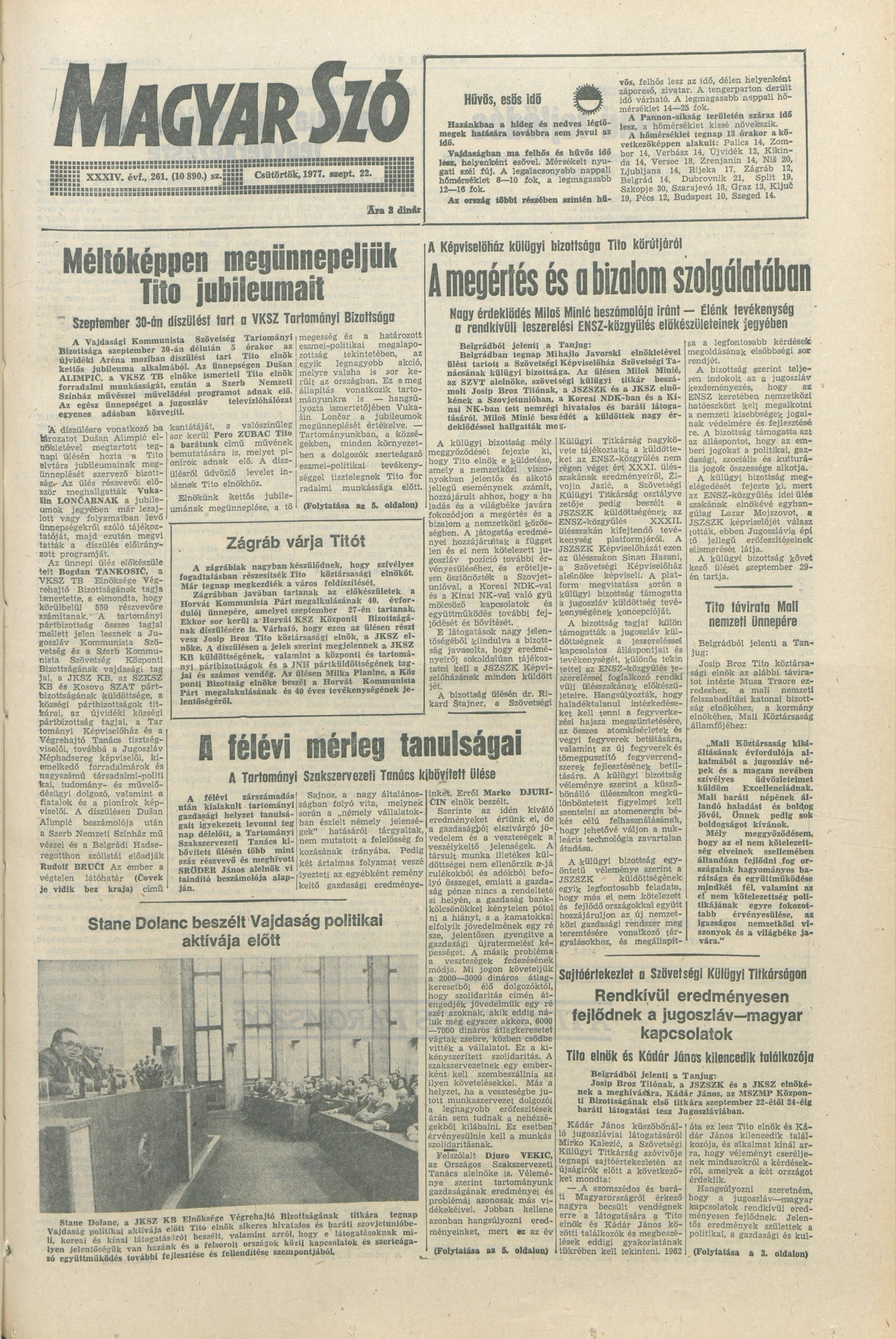 Magyar Szó, 34. évf. 1977. szeptember 22. 261. sz.