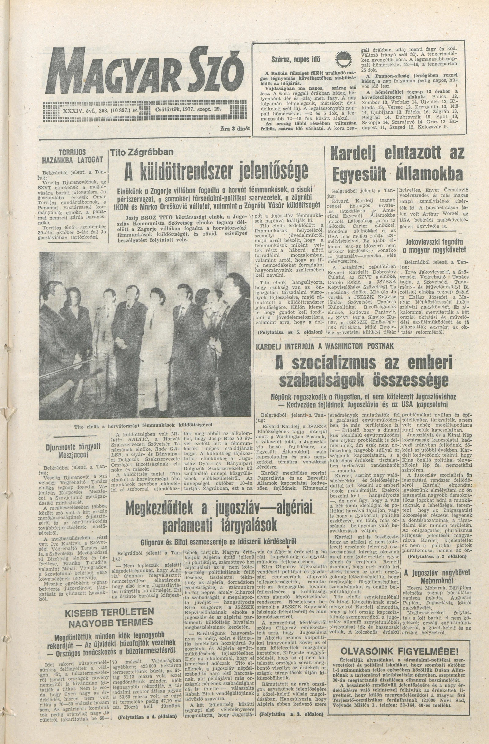 Magyar Szó, 34. évf. 1977. szeptember 29. 268. sz.
