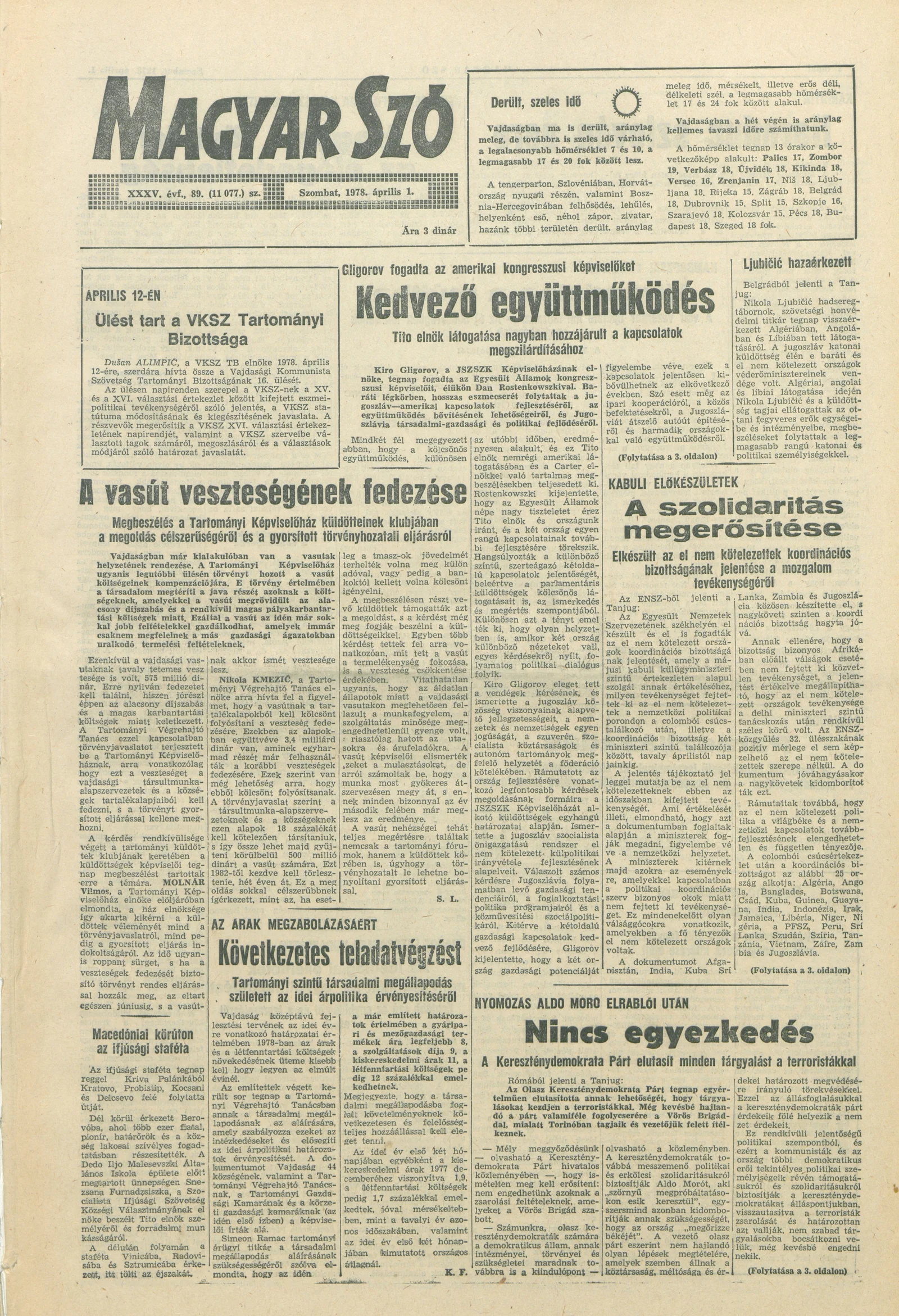 Magyar Szó, 35. évf. 1978. április 1. 89. sz. 1–20. oldal