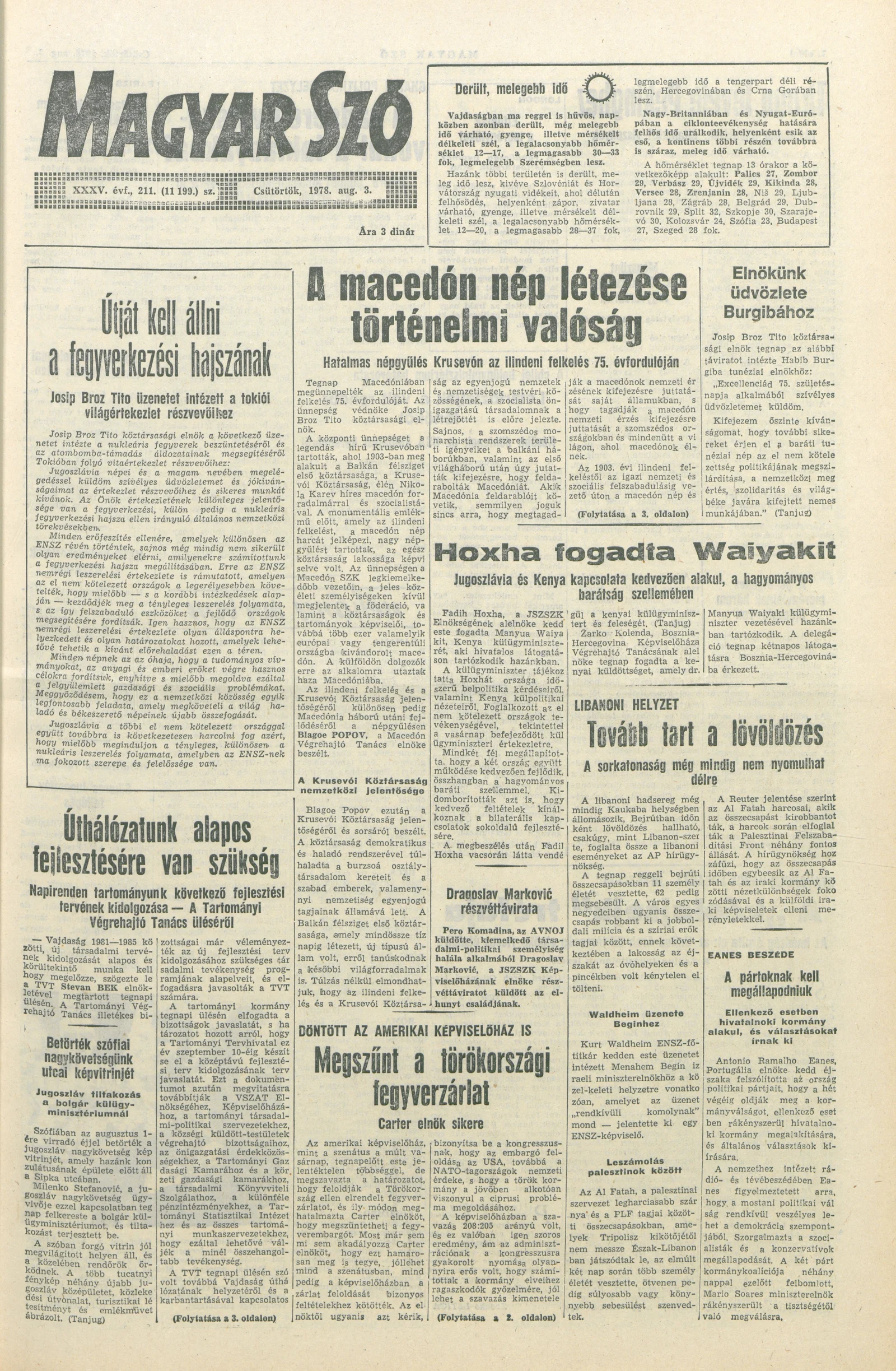 Magyar Szó, 35. évf. 1978. augusztus 3. 211. sz. 1–16. oldal