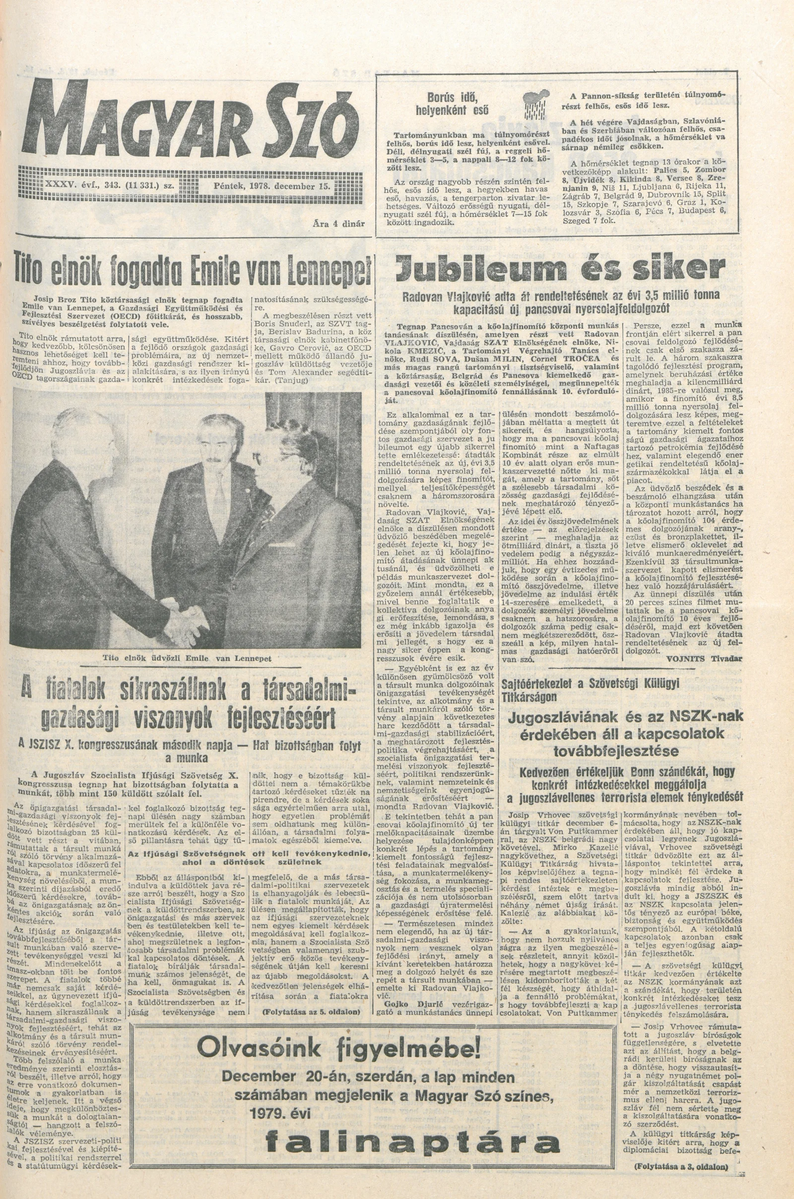 Magyar Szó, 35. évf. 1978. december 15. 343. sz. 1–20. oldal