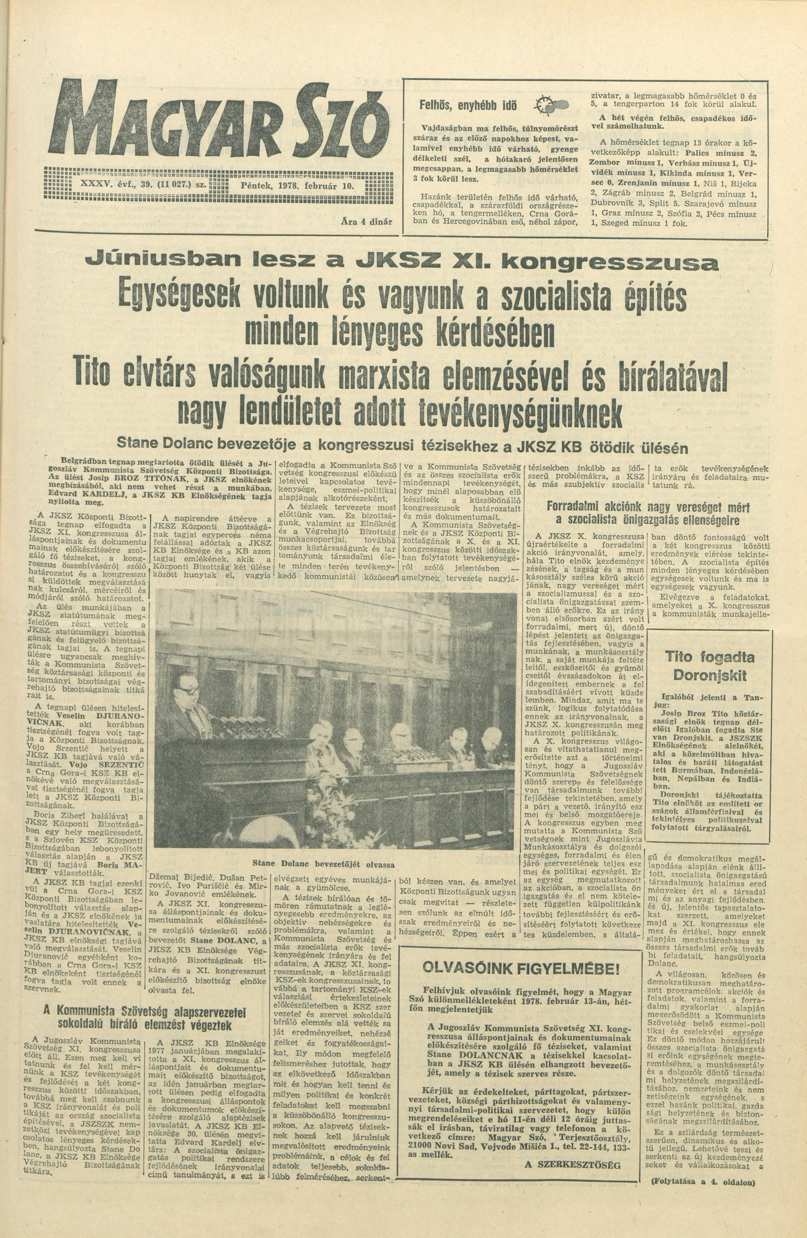 Magyar Szó, 35. évf. 1978. február 10. 39. sz. 1–20. oldal