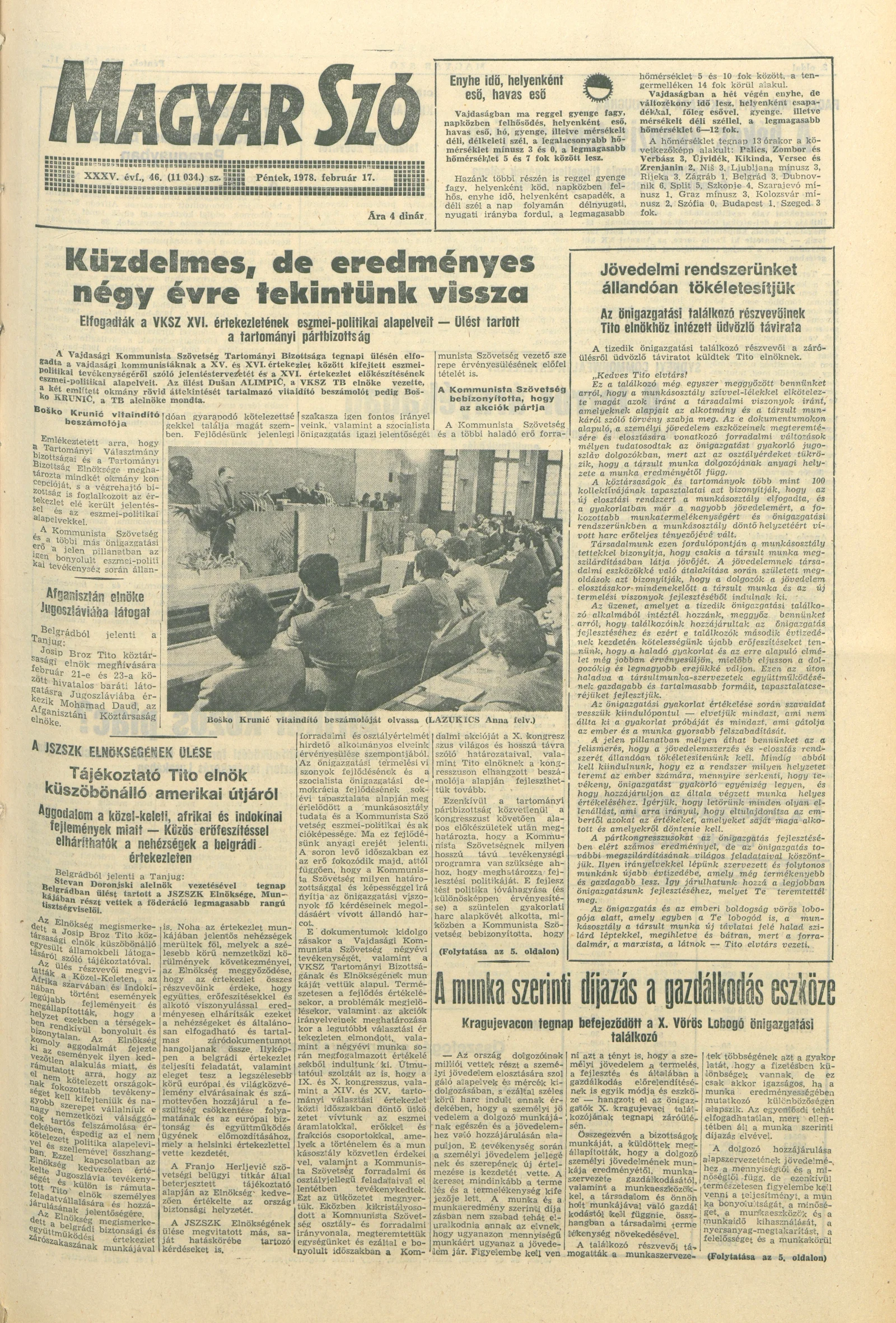 Magyar Szó, 35. évf. 1978. február 17. 46. sz. 1–16. oldal