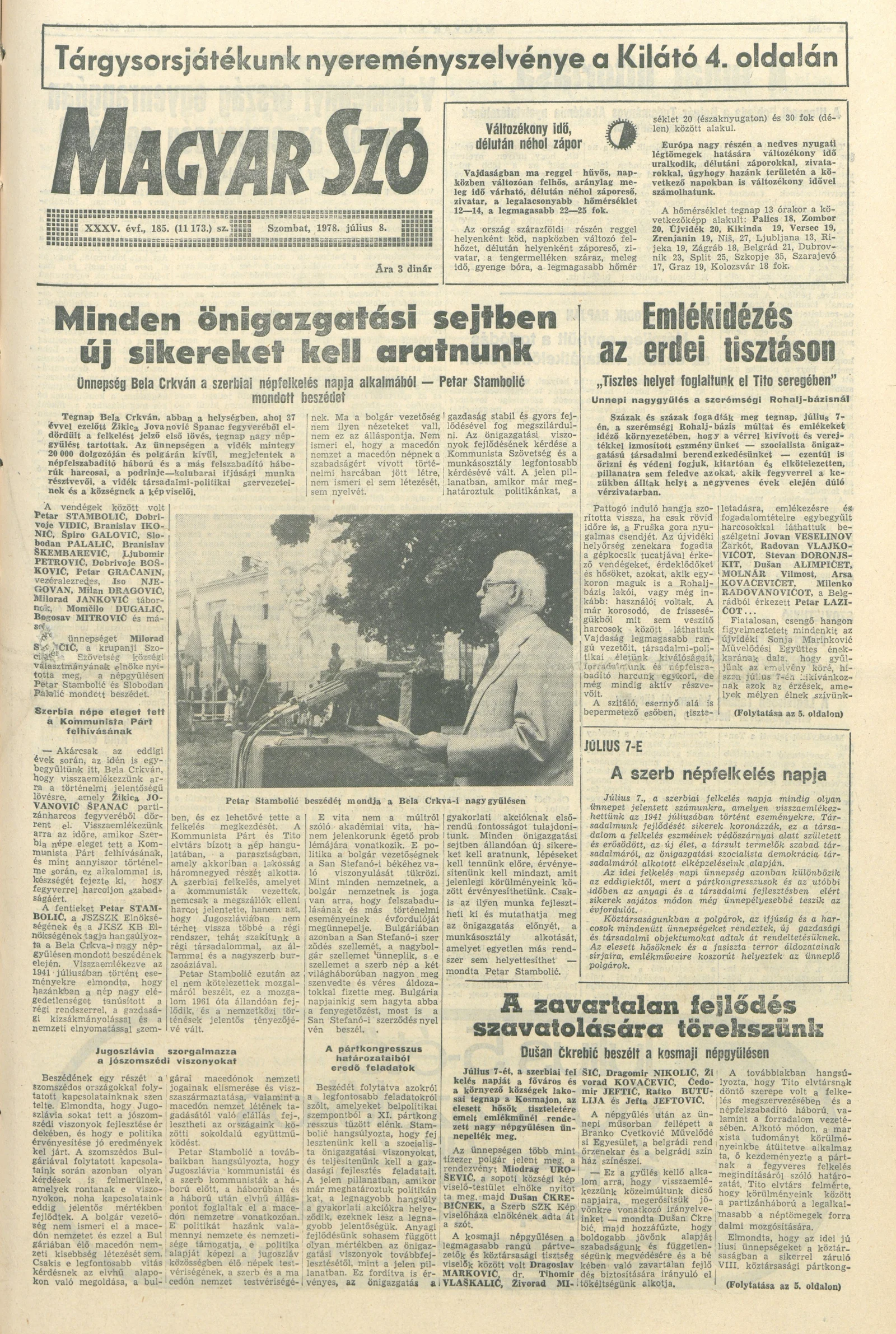 Magyar Szó, 35. évf. 1978. július 8. 185. sz. 1–16. oldal