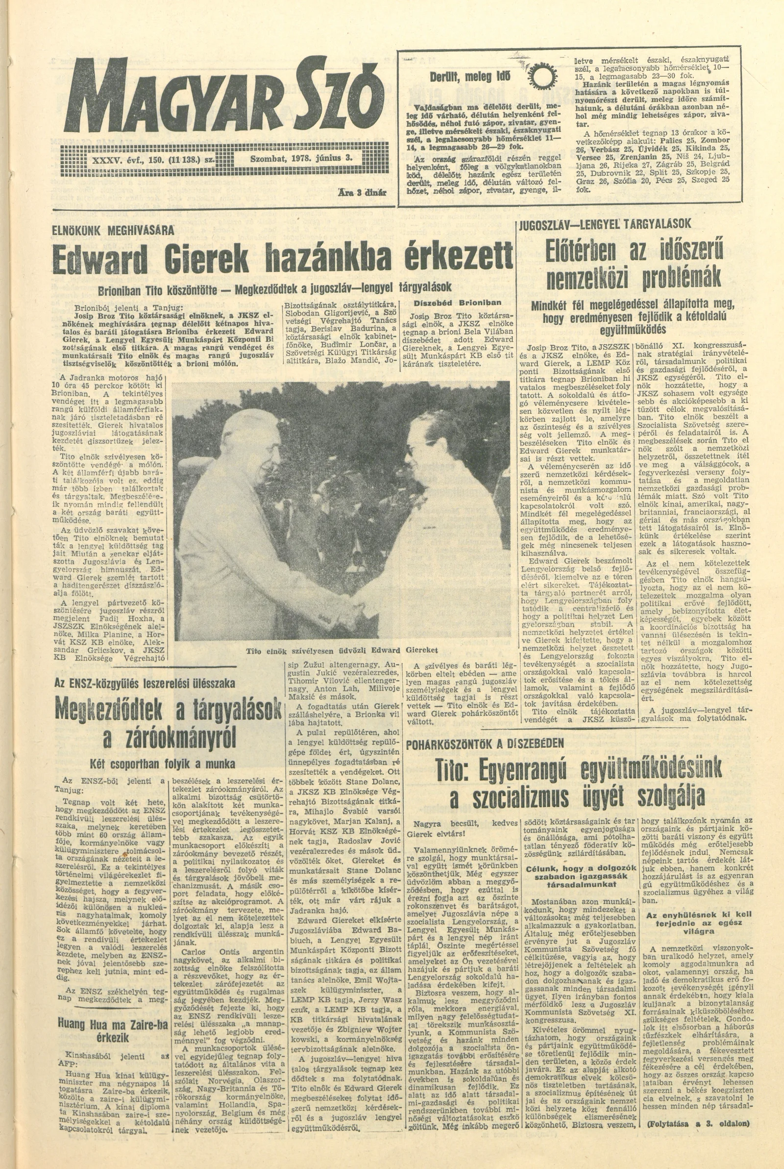 Magyar Szó, 35. évf. 1978. június 3. 150. sz. 1–20. oldal