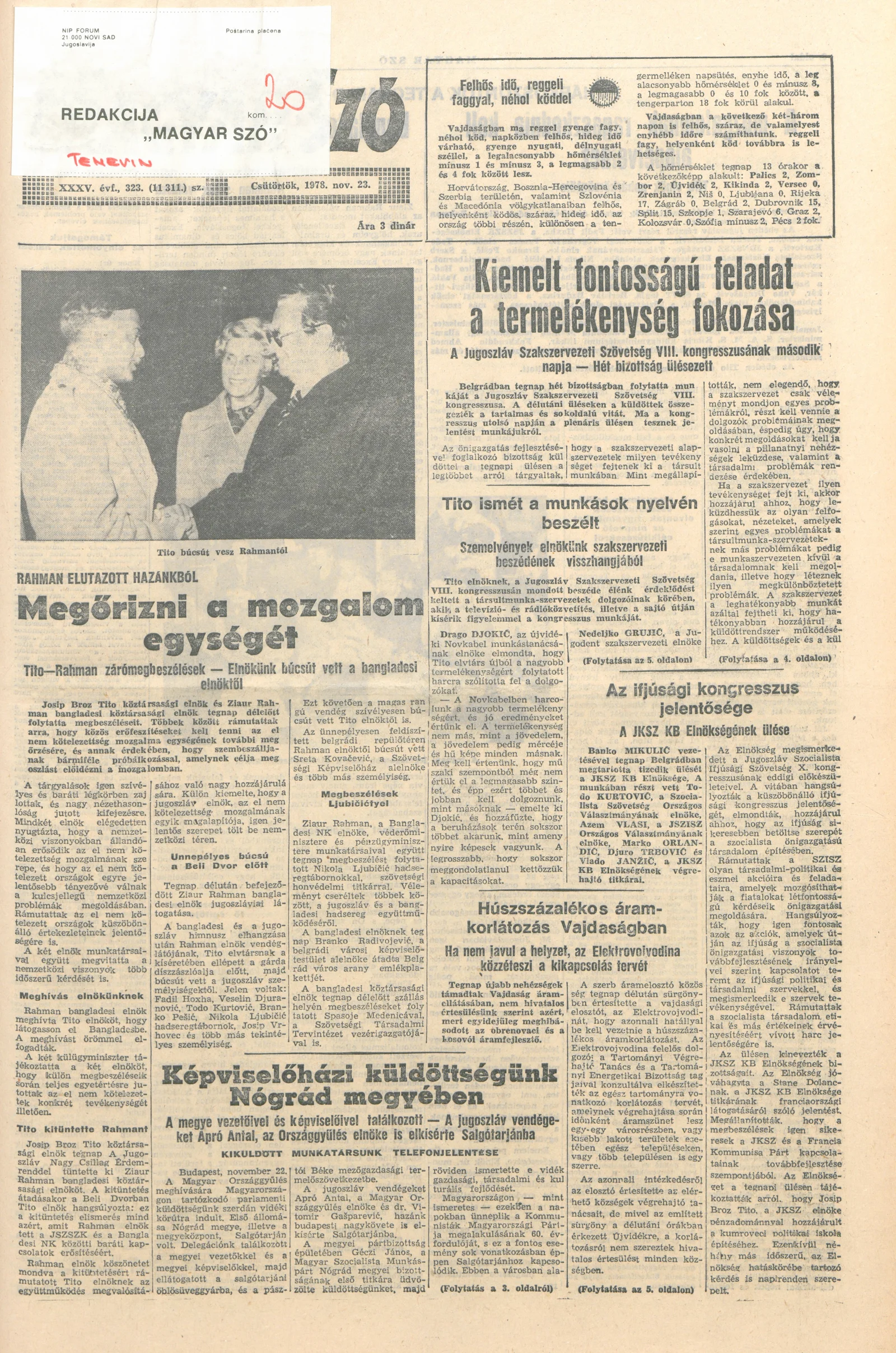 Magyar Szó, 35. évf. 1978. november 23. 323. sz. 1–20. oldal