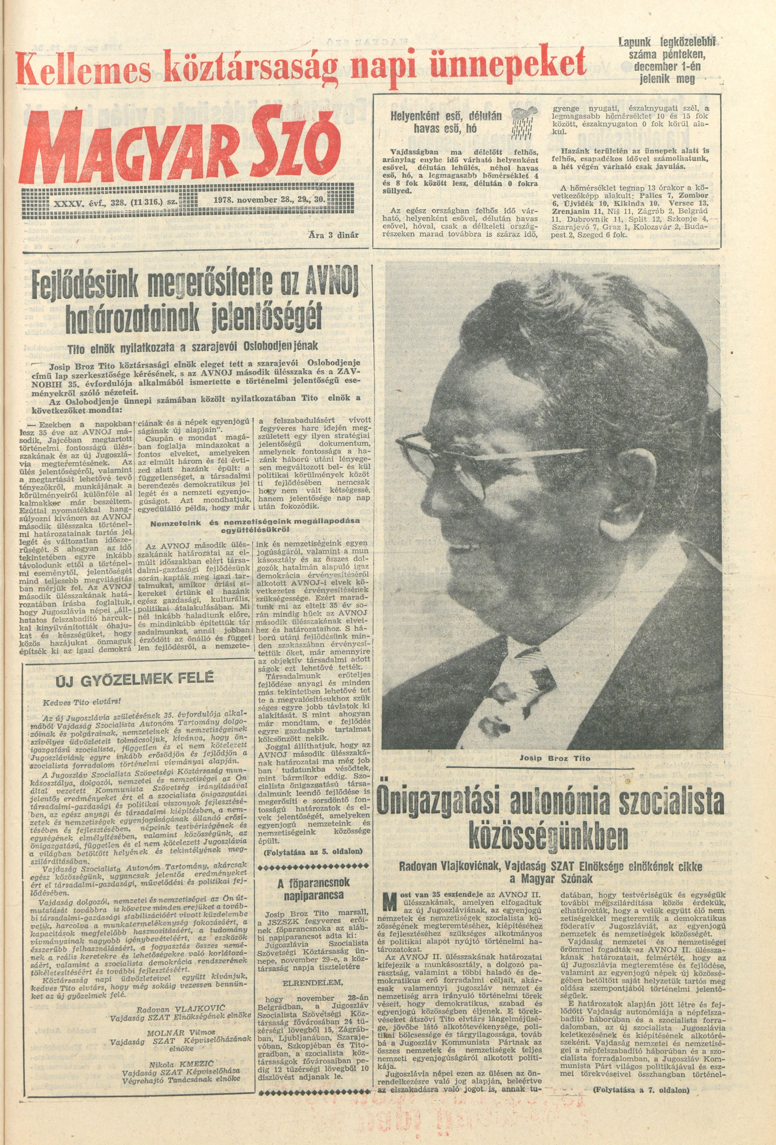 Magyar Szó, 35. évf. 1978. november 28. – 30. 328. sz. 1–32. oldal