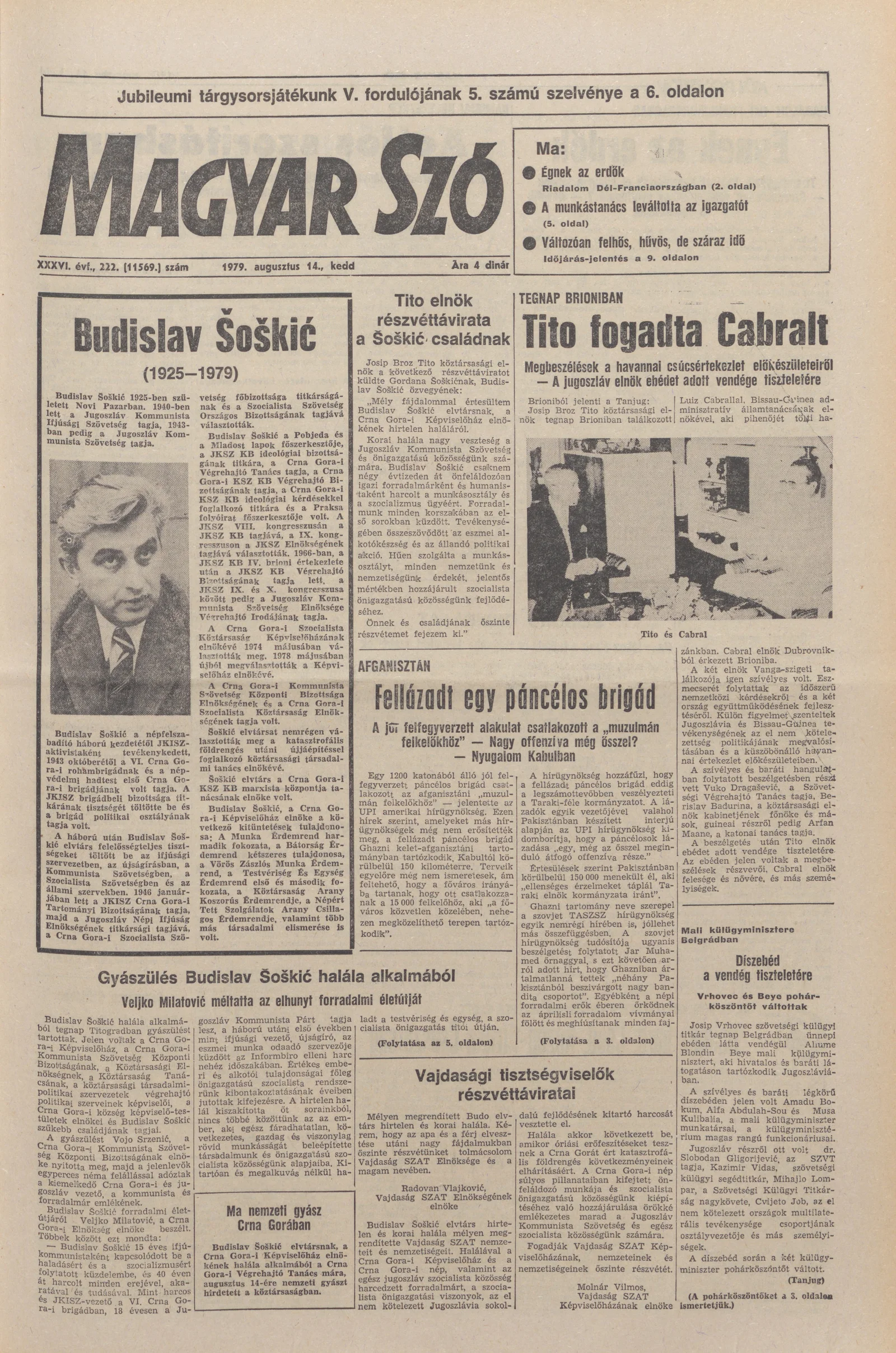 Magyar Szó, 36. évf. 1979. augusztus 14. 222. sz. 1–16. oldal