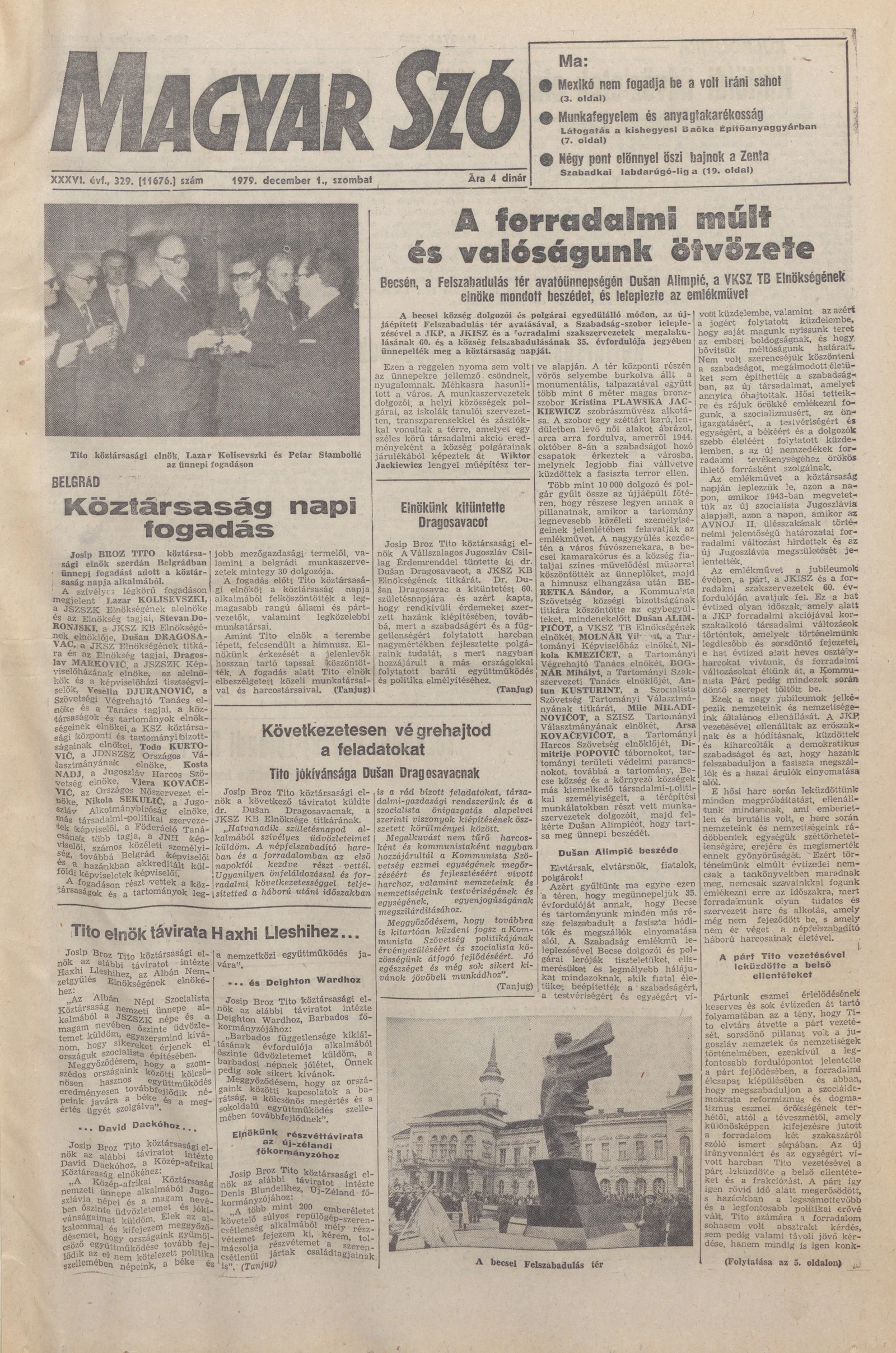 Magyar Szó, 36. évf. 1979. december 1. 329. sz. 1–20. oldal