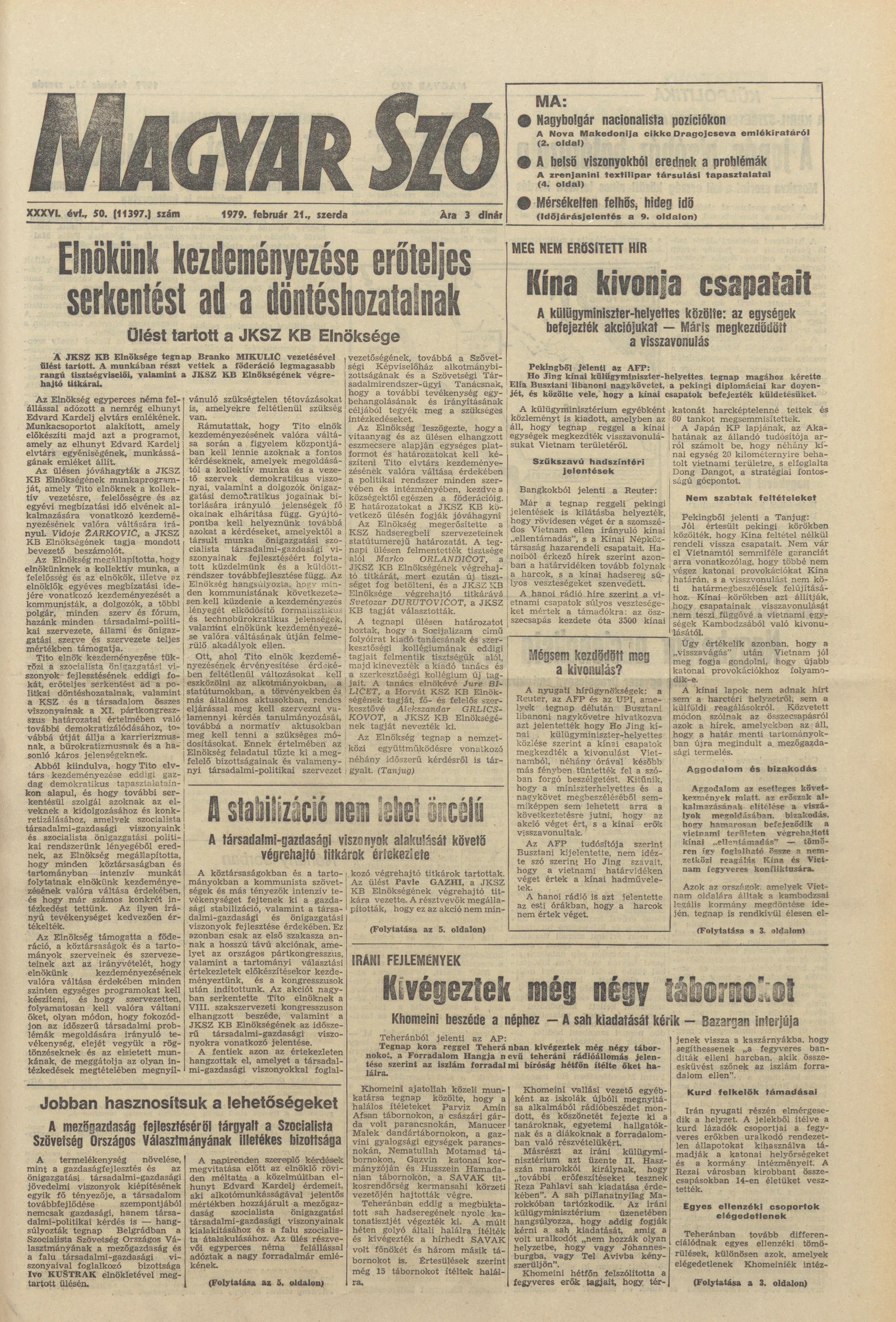 Magyar Szó, 36. évf. 1979. február 21. 50. sz. 1–20. oldal