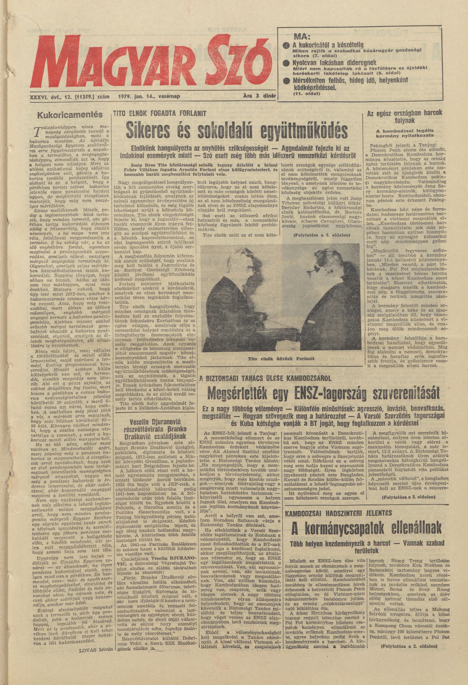 Magyar Szó, 36. évf. 1979. január 14. 12. sz. 1–32. oldal