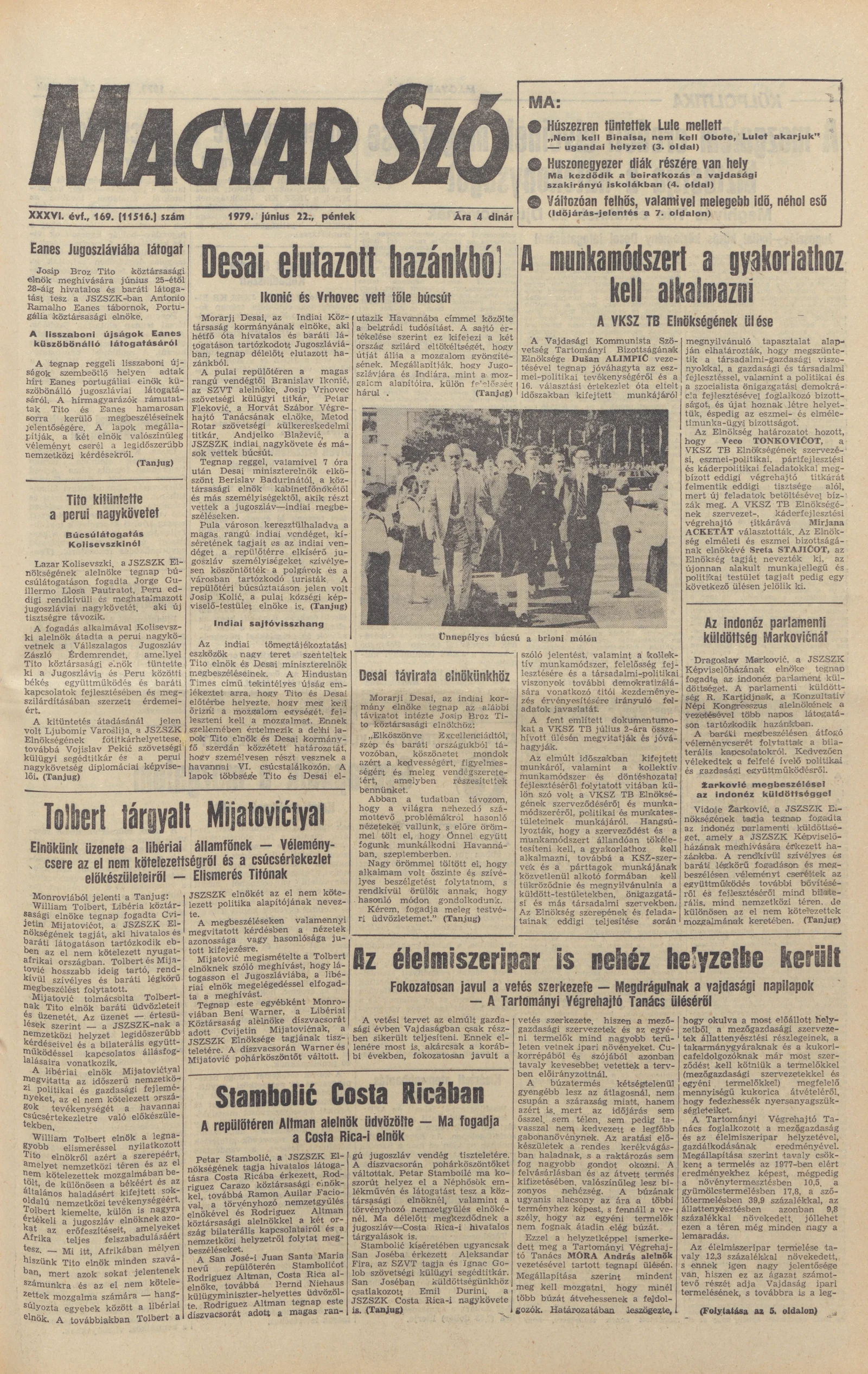 Magyar Szó, 36. évf. 1979. június 22. 169. sz. 1–20. oldal