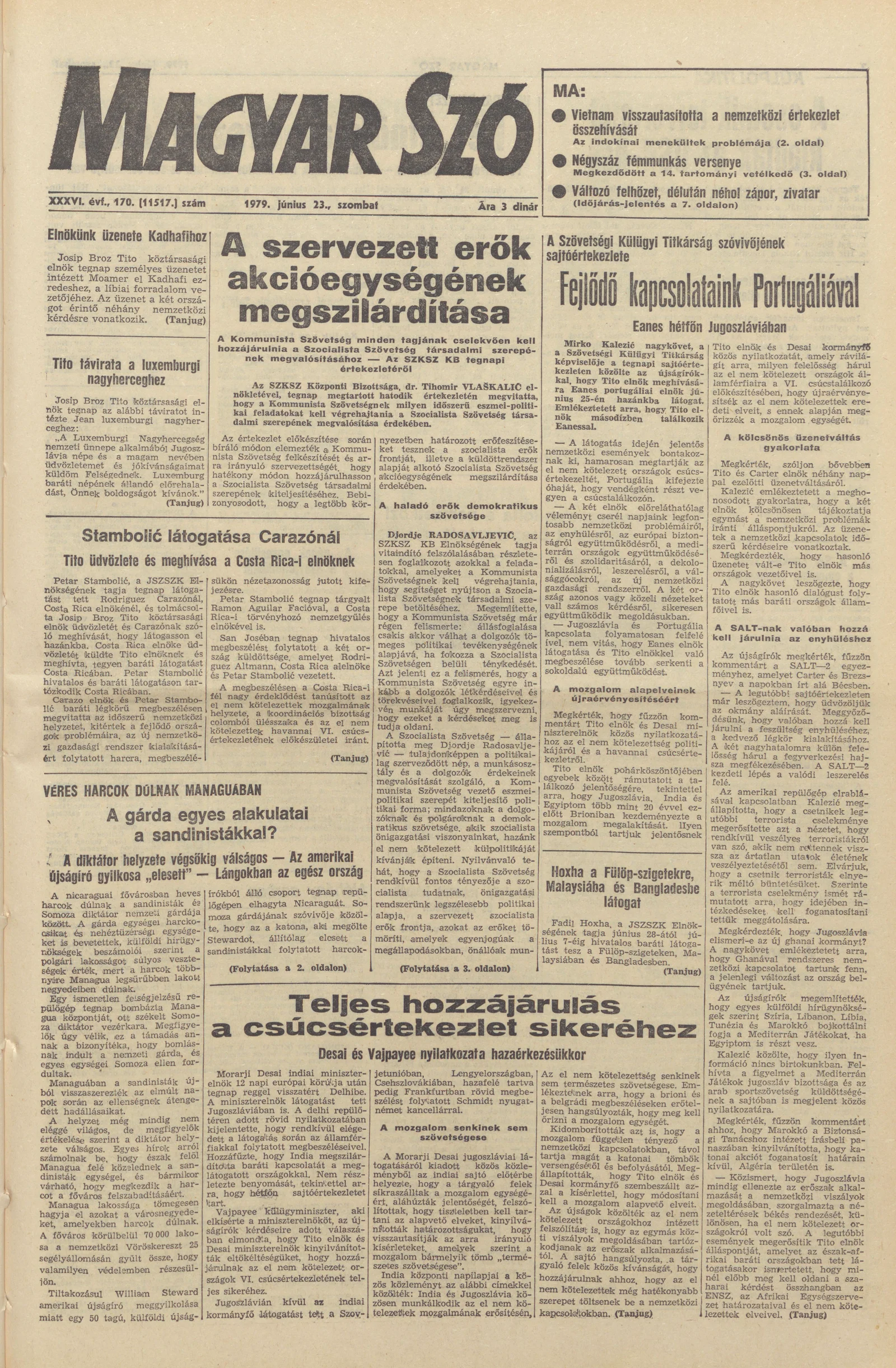 Magyar Szó, 36. évf. 1979. június 23. 170. sz. 1–16. oldal
