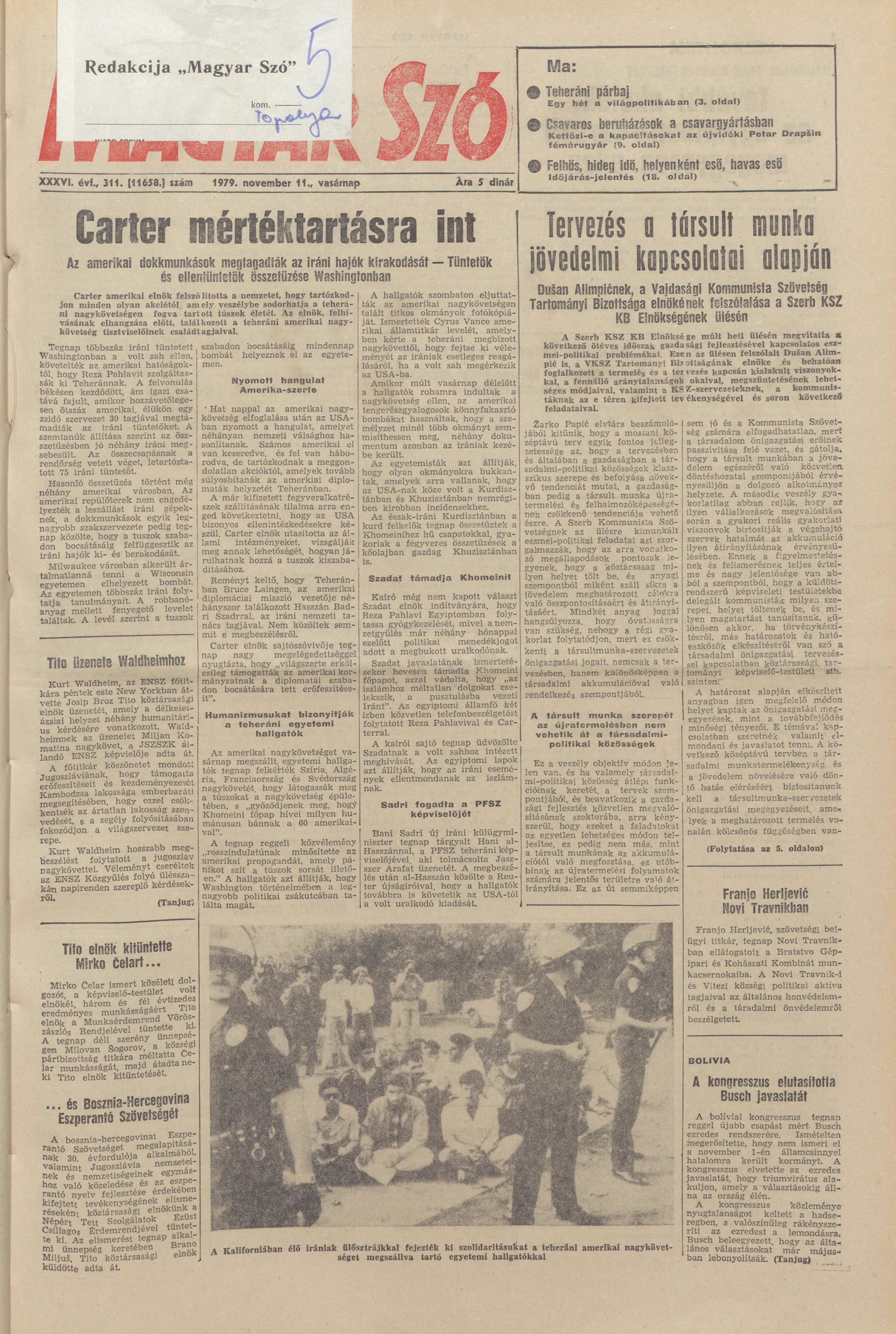 Magyar Szó, 36. évf. 1979. november 11. 311. sz. 1–32. oldal